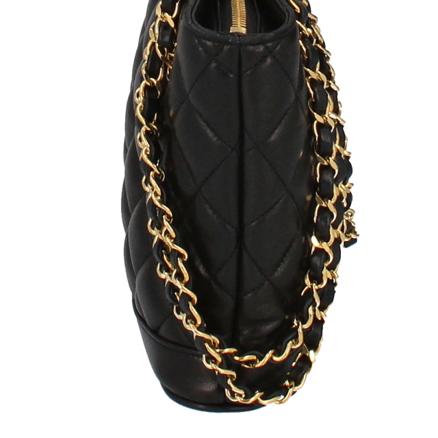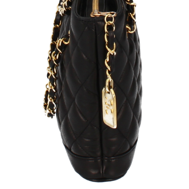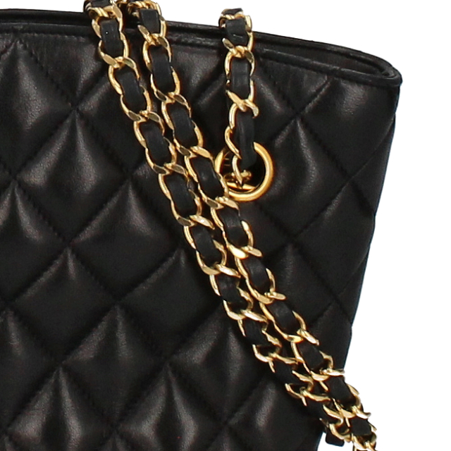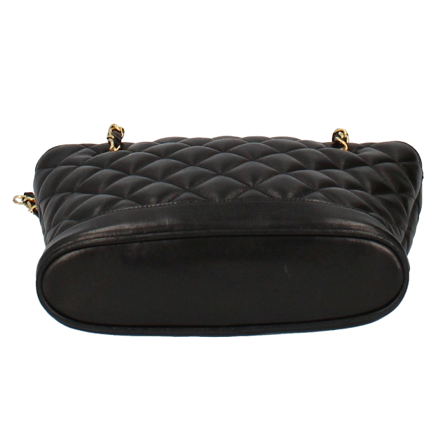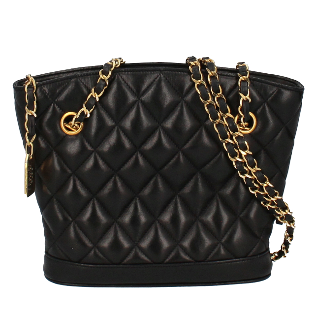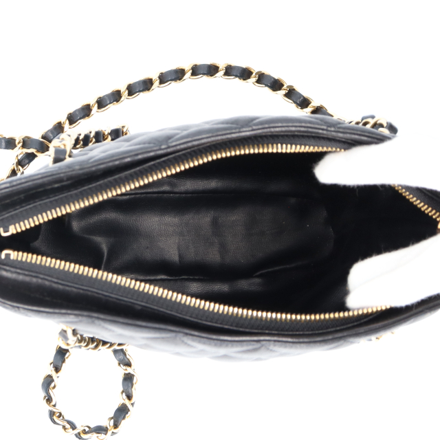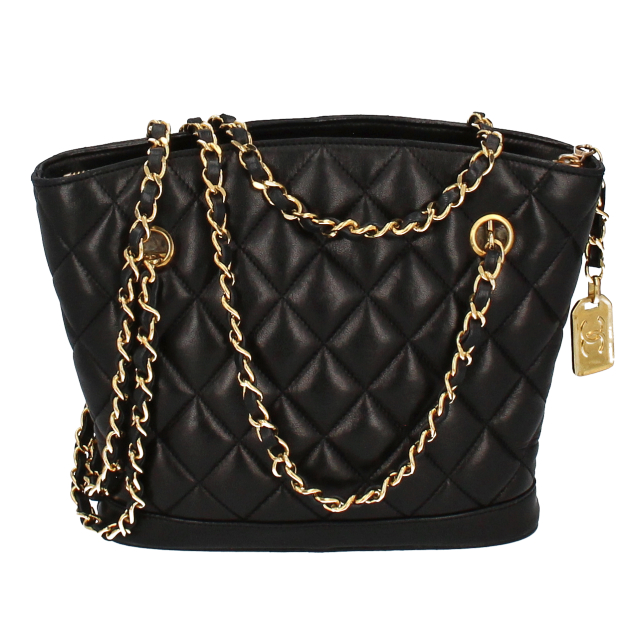 USED品。ゴールド金具。マトラッセが上品で高級感漂うチェーンバックパック。カジュアルになりすぎずファッショナブルな印象を与えるバッグです。