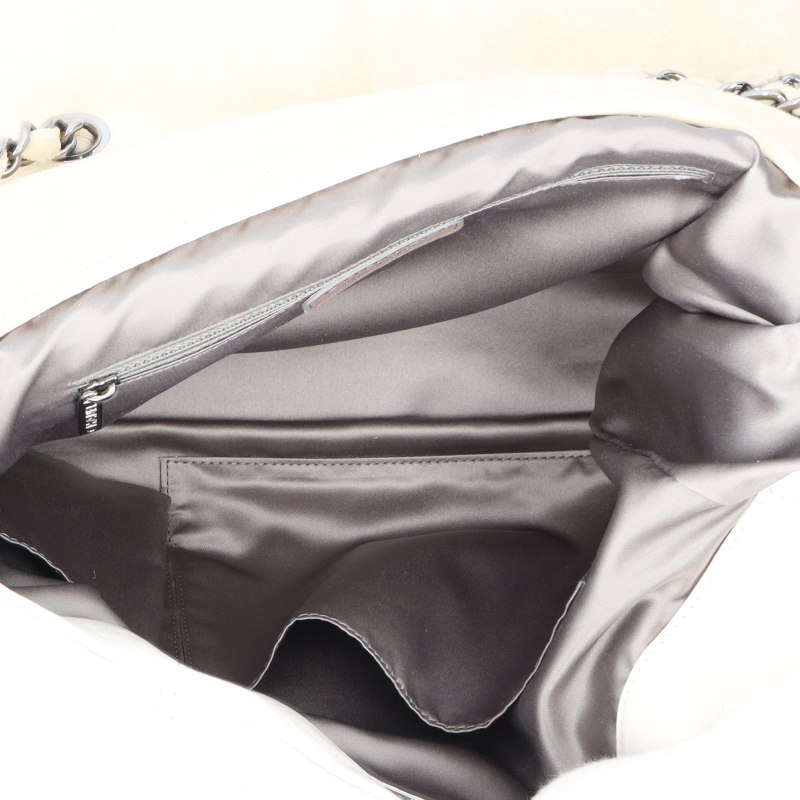 USED品。シルバー金具。シンプルかつ洗練されたデザインがあらゆるコーディネートにマッチします。一生もののバッグとして末長くお使いいただけるアイテムです。