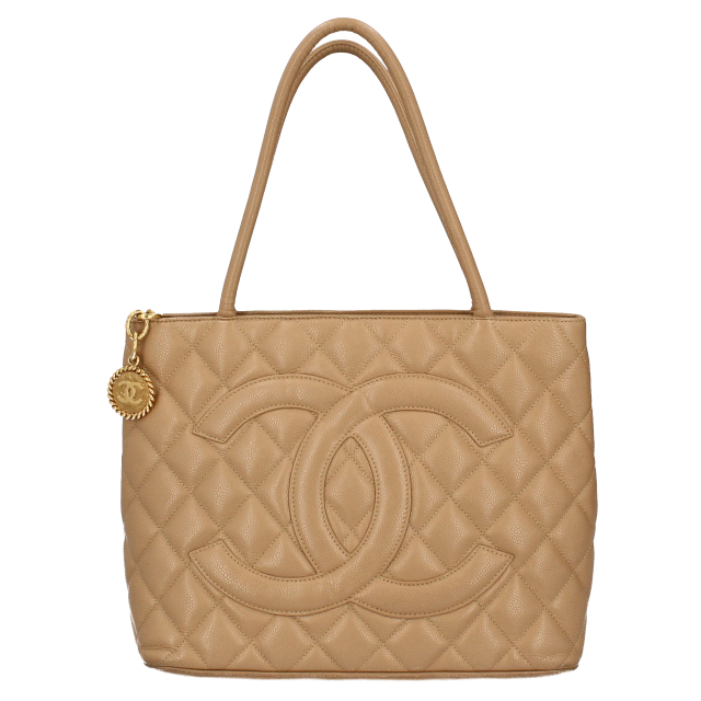 USED品。ゴールド金具。ラシカルな雰囲気のトートバッグ。前面に大きく施されたココマーク、ファスナーに付いたコインの飾りがポイントです。カジュアルな印象の商品ですので普段使いのバッグとしてもおすすめです。