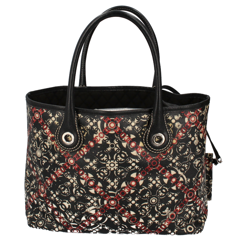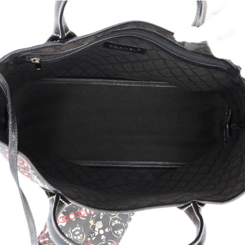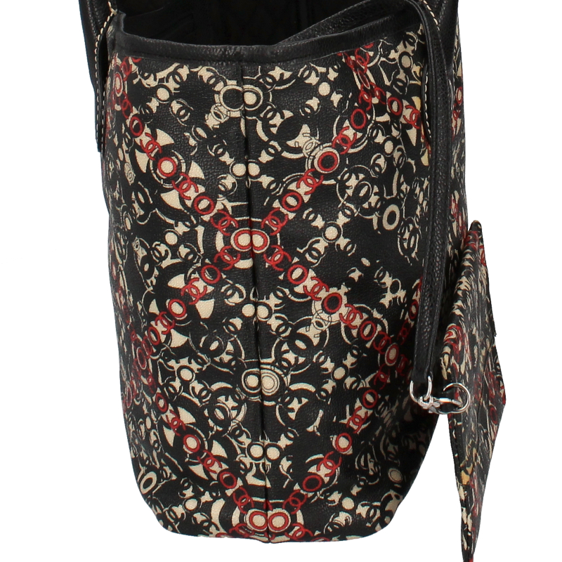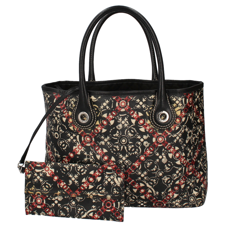 USED品。PVC素材の総柄のトートバッグです。とても容量の大きいトートバッグですので名前のように旅行のお供にぴったりのお品物です。
