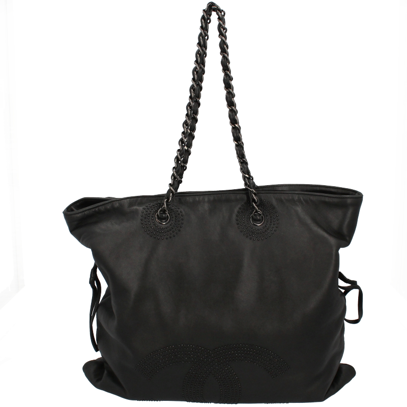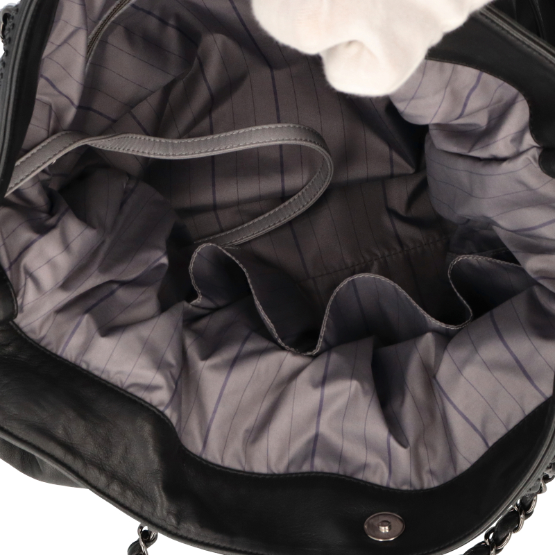 USED品。シルバー金具。柔らかなレザーのチェーントートバッグです。シャネルらしい高級感あふれるエレガントな逸品で普段使いにオススメです。