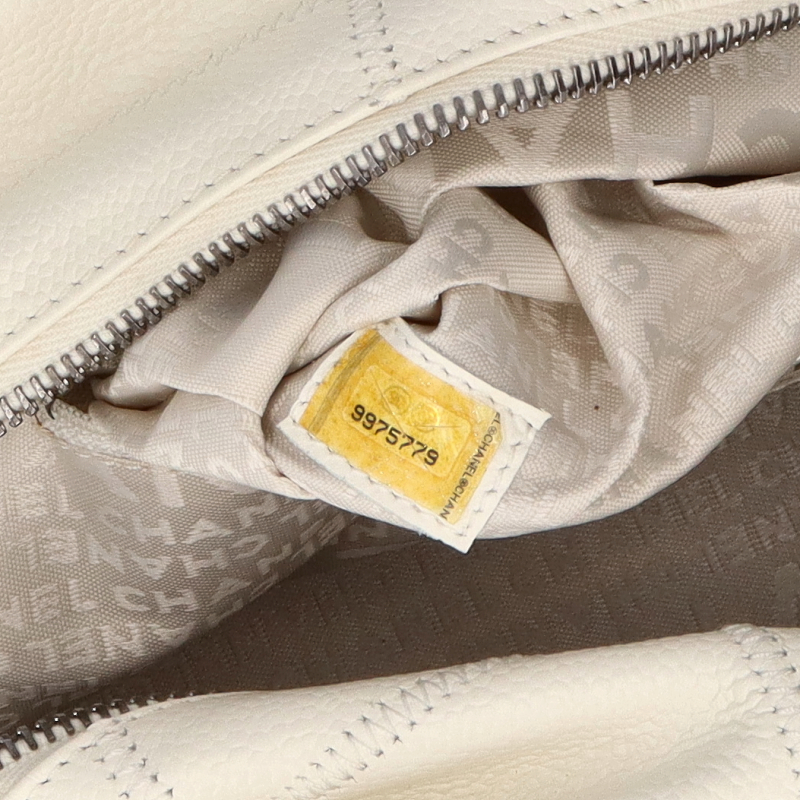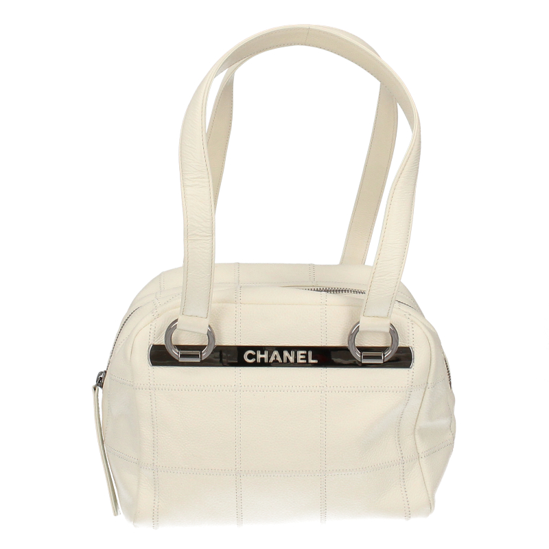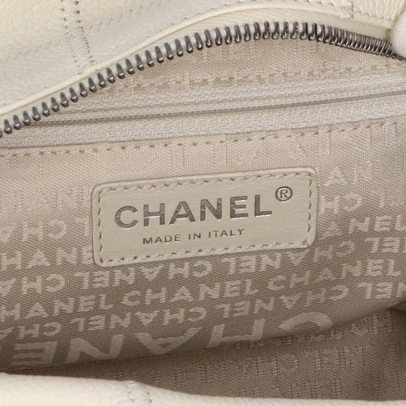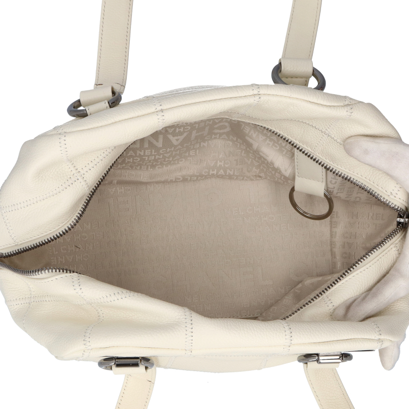 USED品。シルバー金具。シンプルでどんなコーデにも合うチョコバーライン。柔らかく傷がつきにくいソフトキャビアスキンを使用。ココマークの型抜きされた金具がお洒落です。