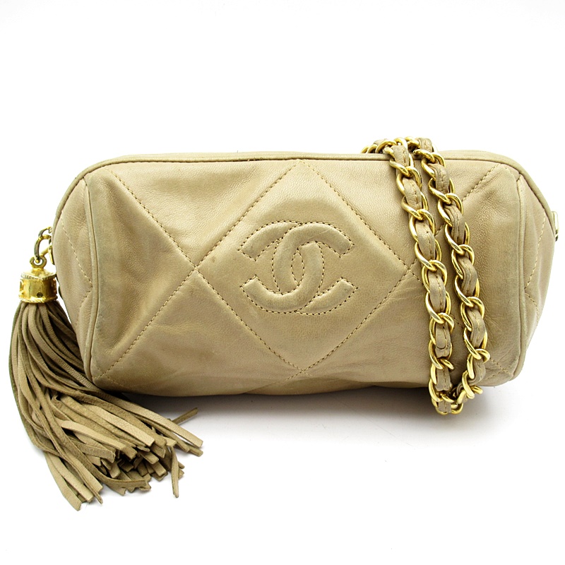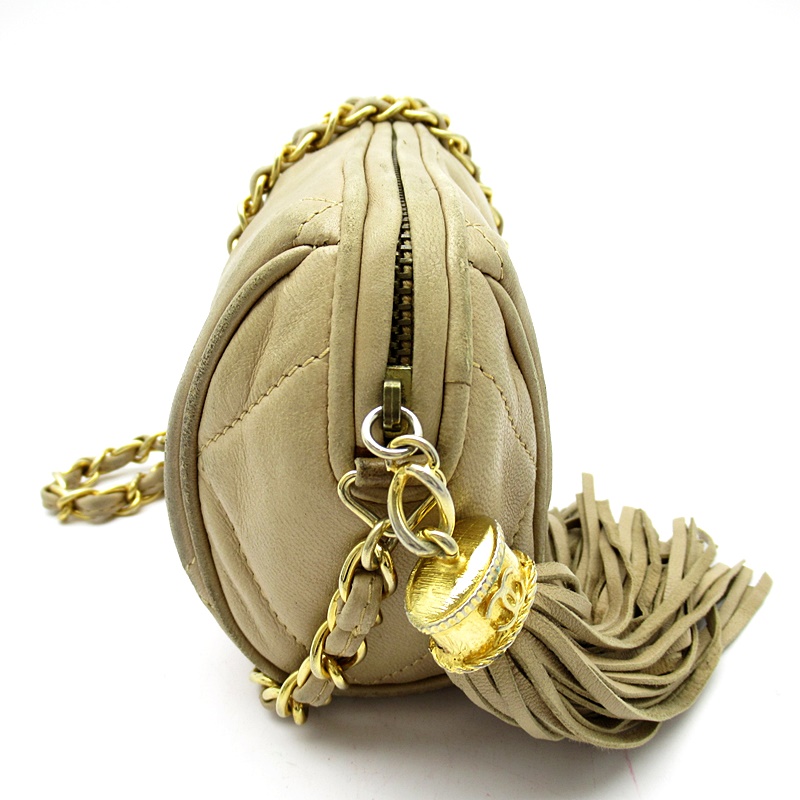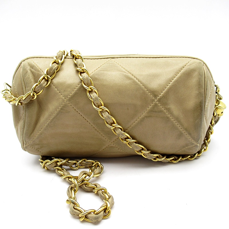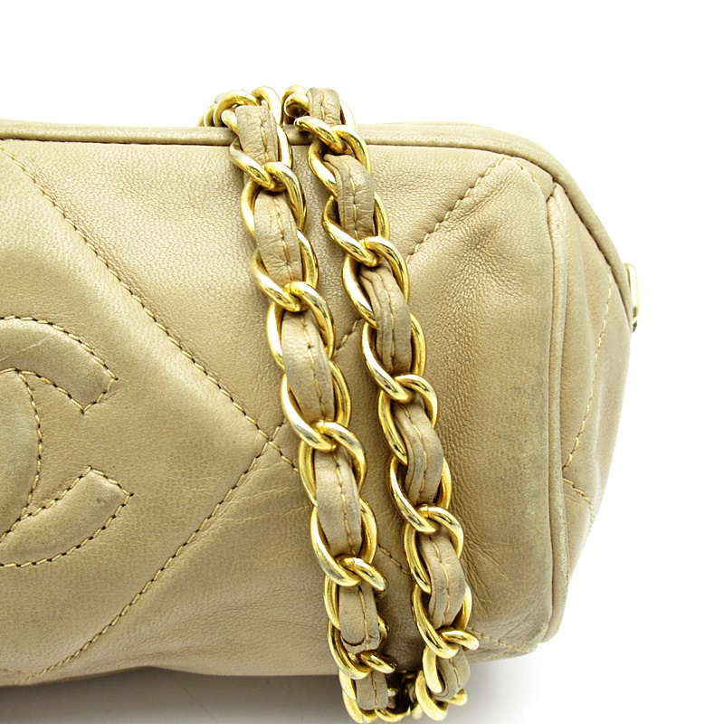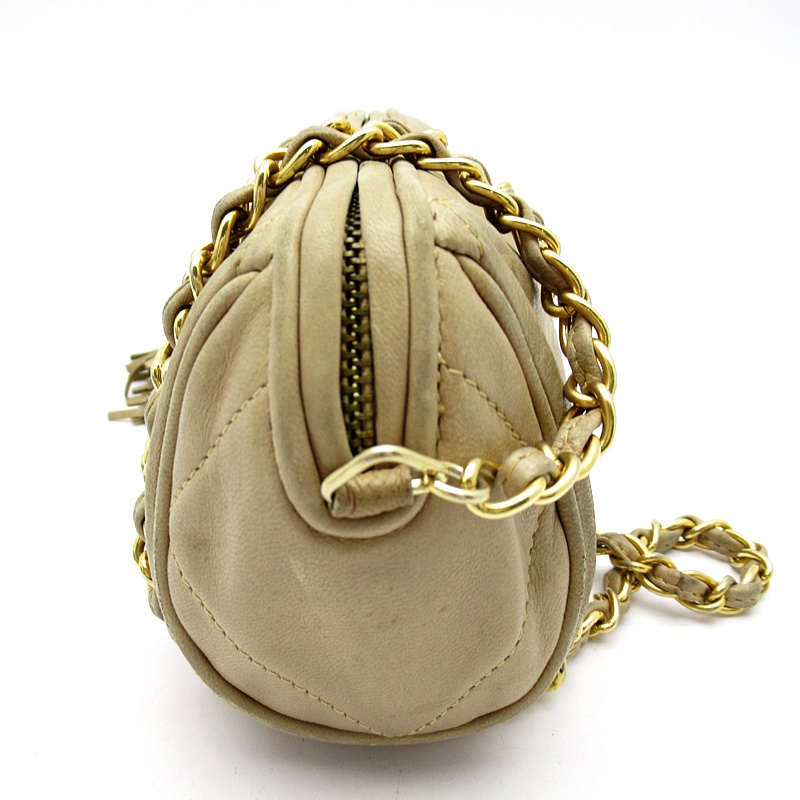 USED品。ラムスキン素材のチェーンショルダーバッグです。シャネルらしい高級感あふれるエレガントな逸品で普段使いにオススメです。