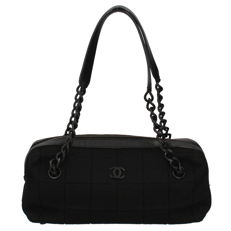 USED品。ブラック金具。「CHANEL」ロゴのハンドバッグ。ちょっとしたお出掛やお散歩などに大活躍なバッグです。