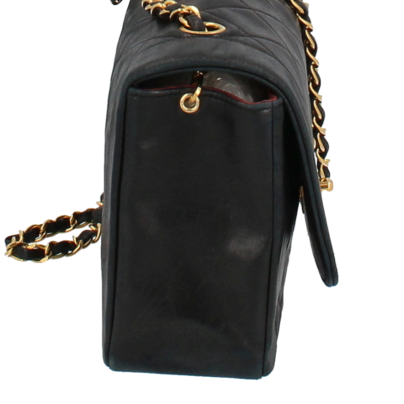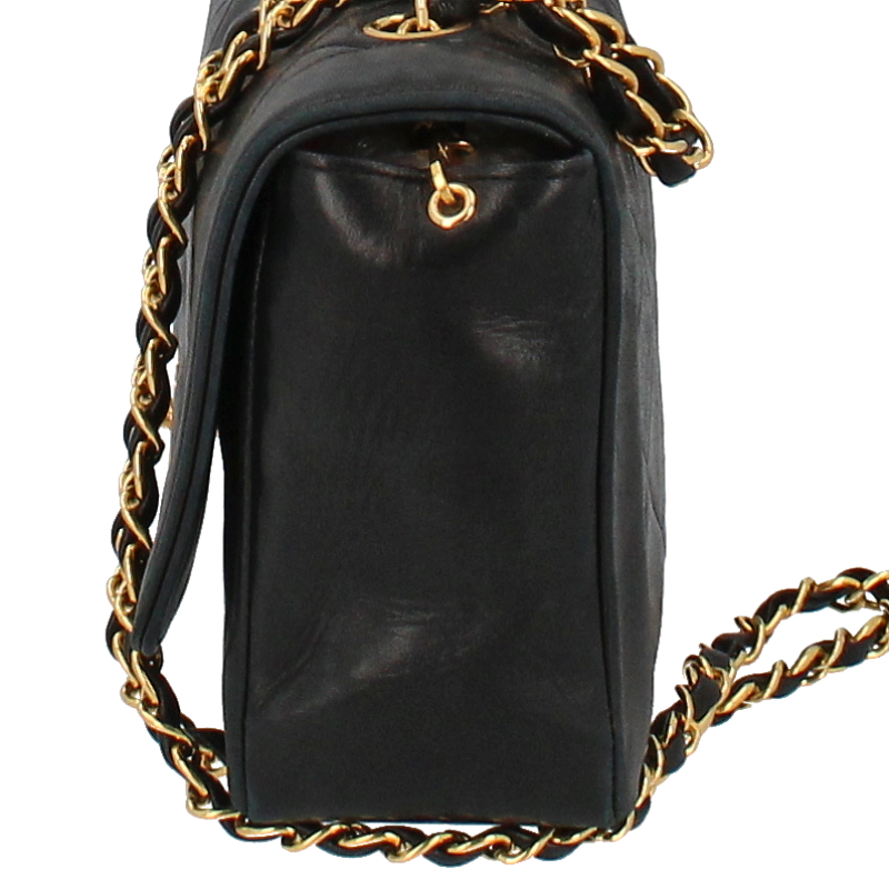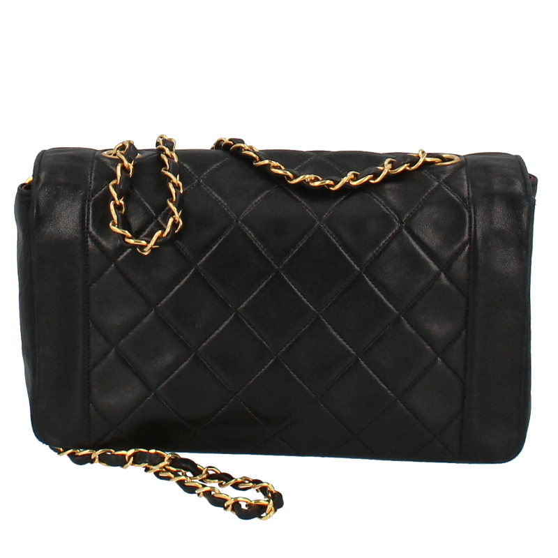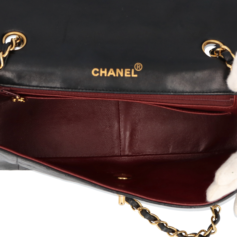 USED品。シャネルの定番デザインの一つ。ダイアナという異名がついたシングルフラップ。シングルチェーンのバッグとなります。