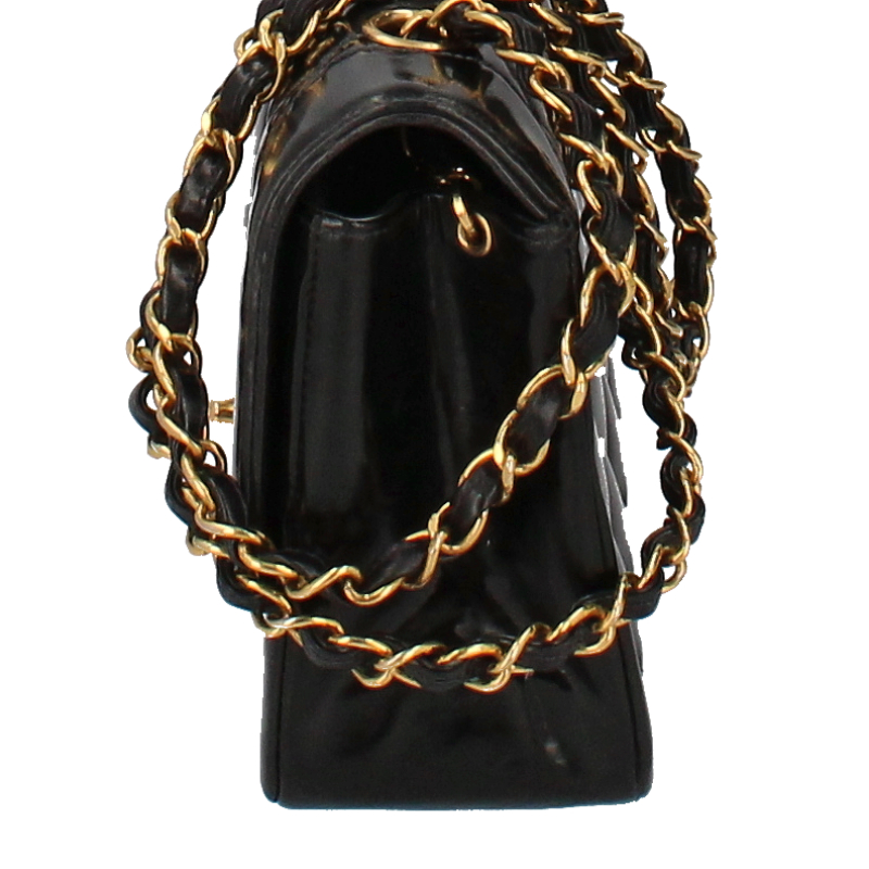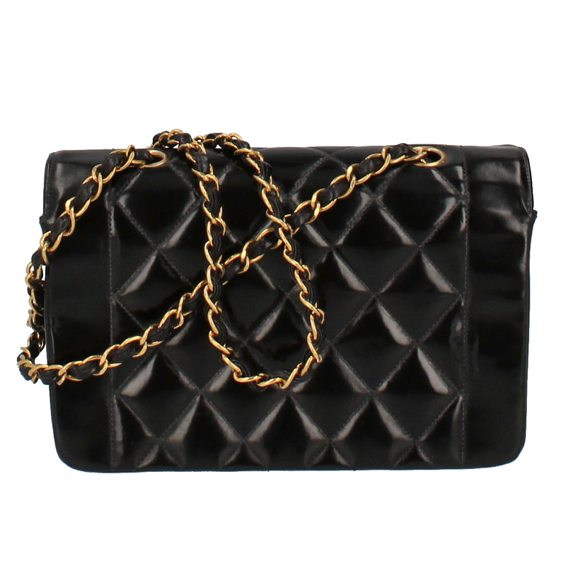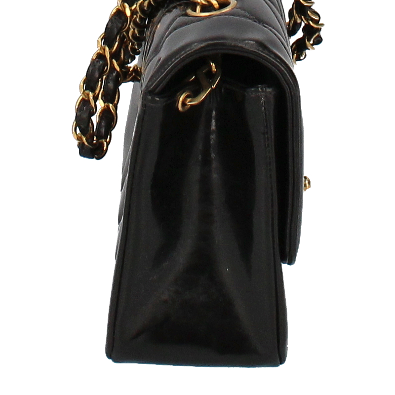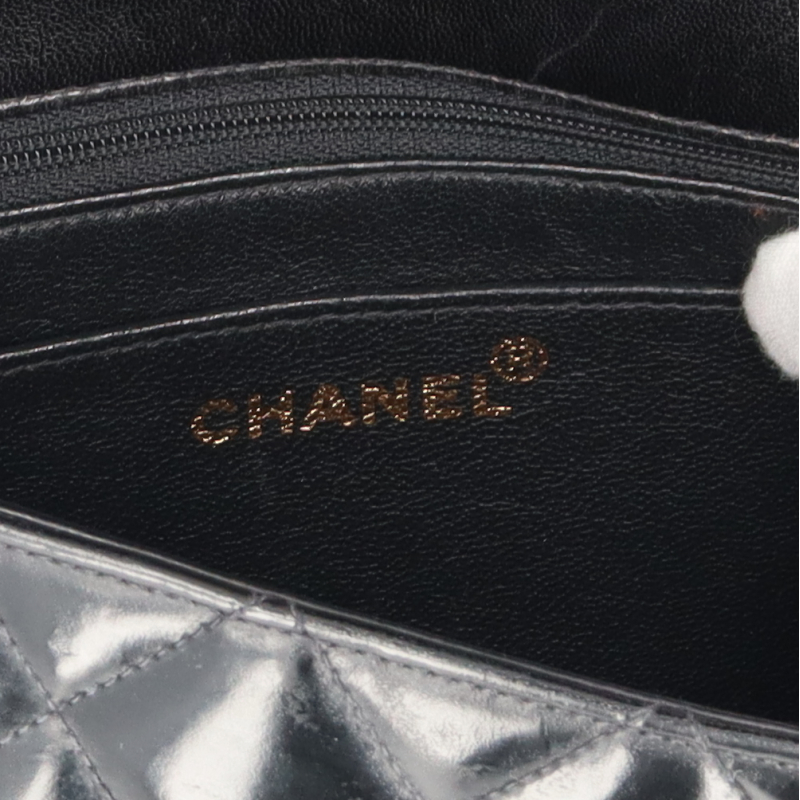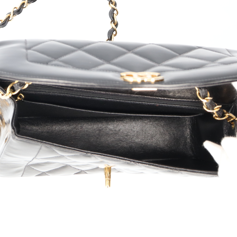 USED品。シャネルの定番デザインの一つ。ダイアナという異名がついたシングルフラップ。シングルチェーンのバッグとなります。