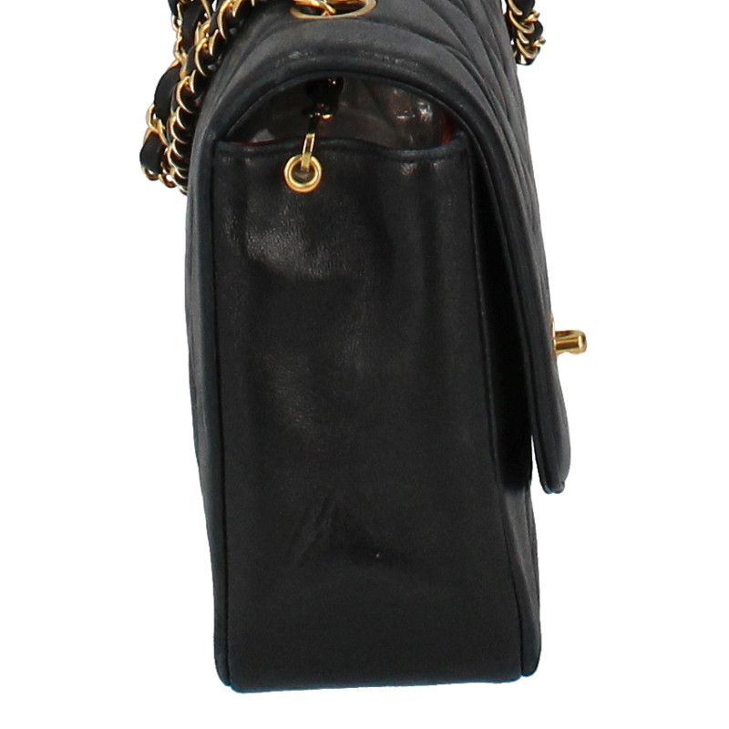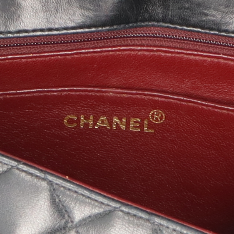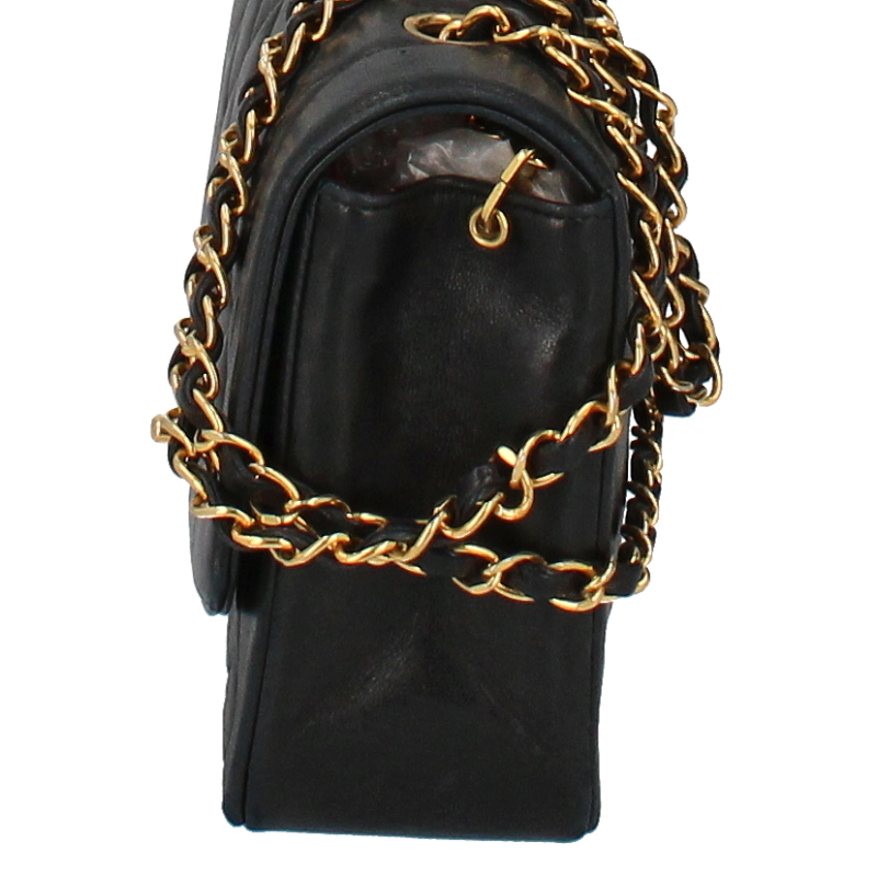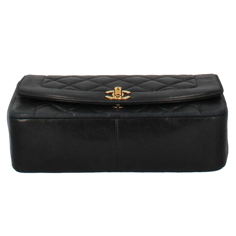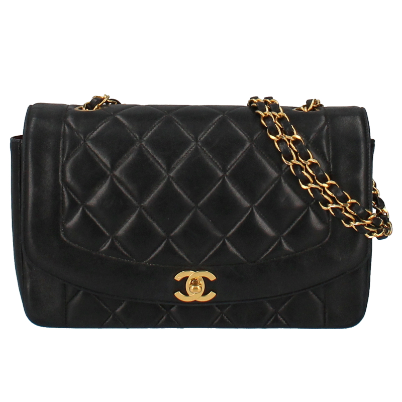 USED品。シャネルの定番デザインの一つ。ダイアナという異名がついたシングルフラップ。シングルチェーンのバッグとなります。