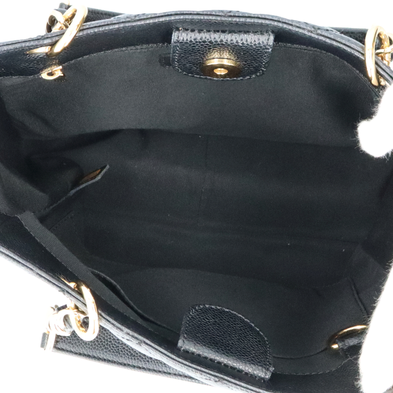 USED品。ゴールド金具。収納箇所も多く、比較的軽くて丈夫なキャビアスキンを使ったバッグとなります。シーンにとらわれず、使用する事が可能です。