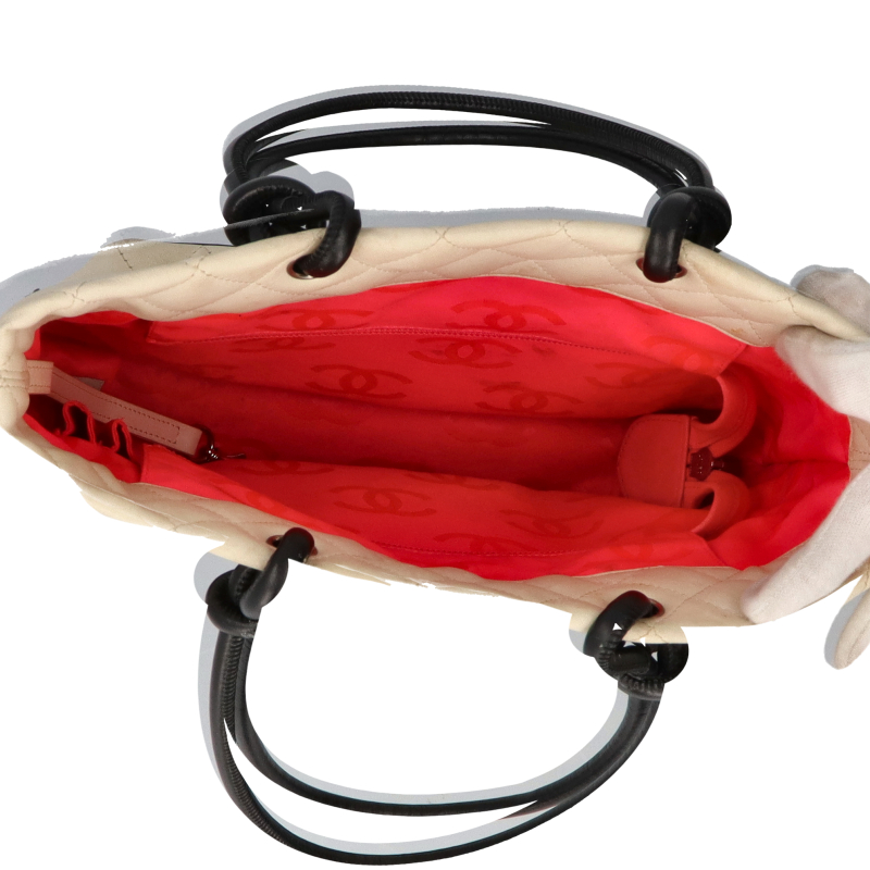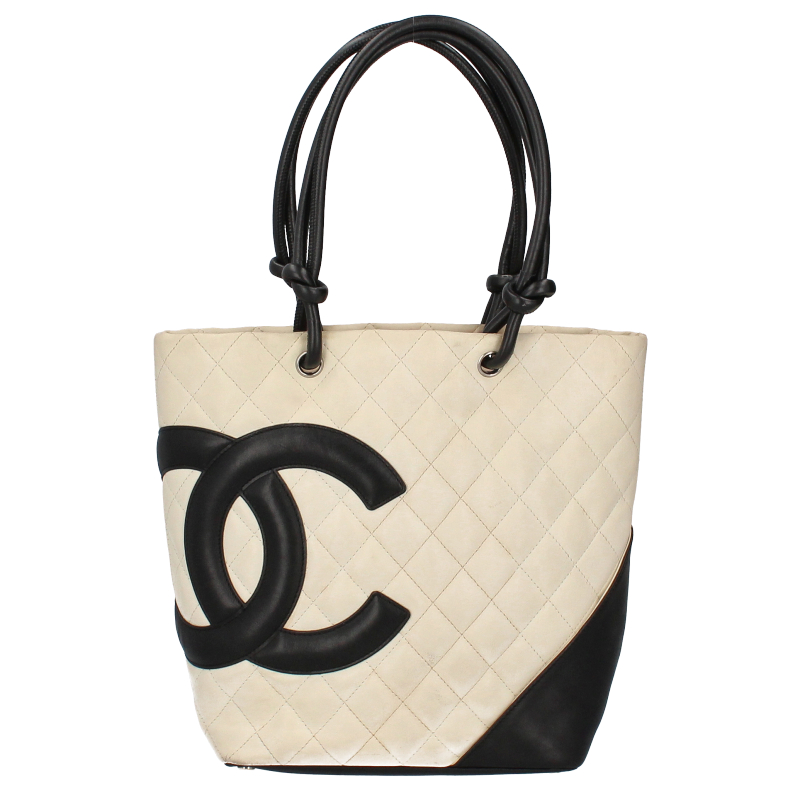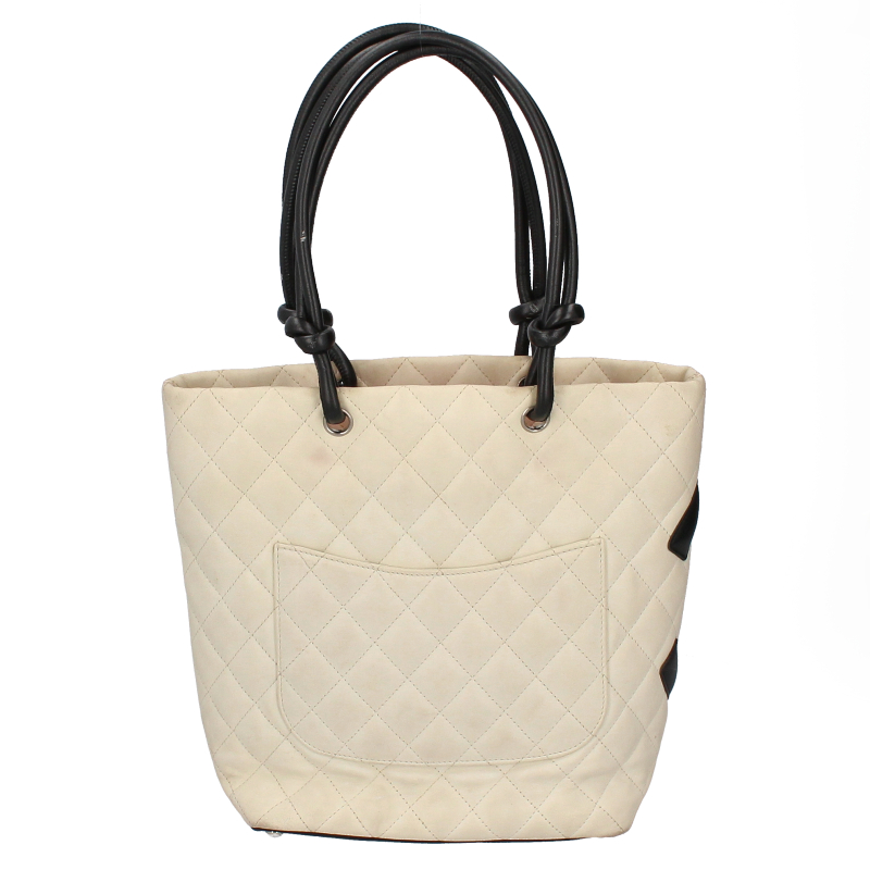 USED品。バイカラーが可愛らしい印象のデザイン『カンボンライン』のトートバッグ。デイリーユースにピッタリのミディアムサイズです。存在感抜群ですのでファッションのポイントとしてご使用いただけます。