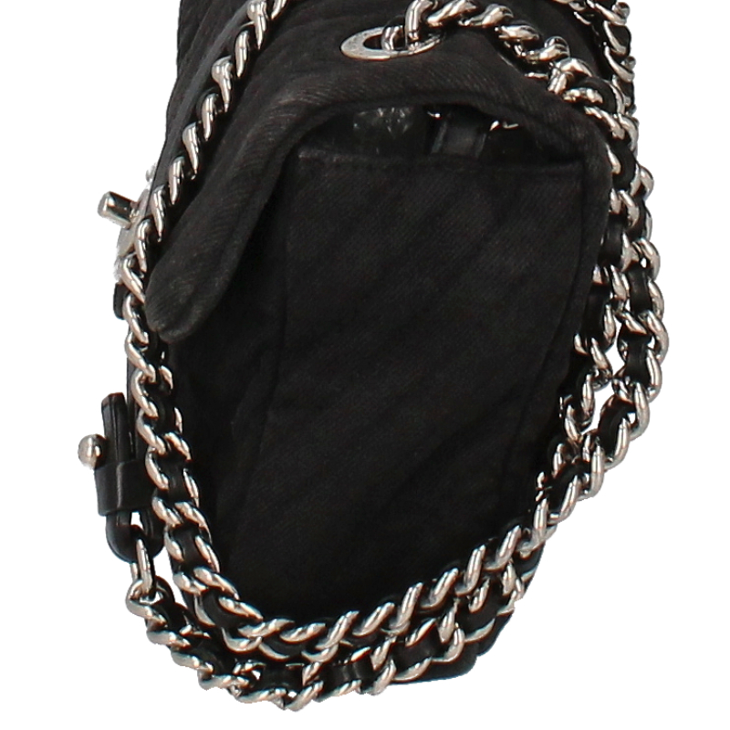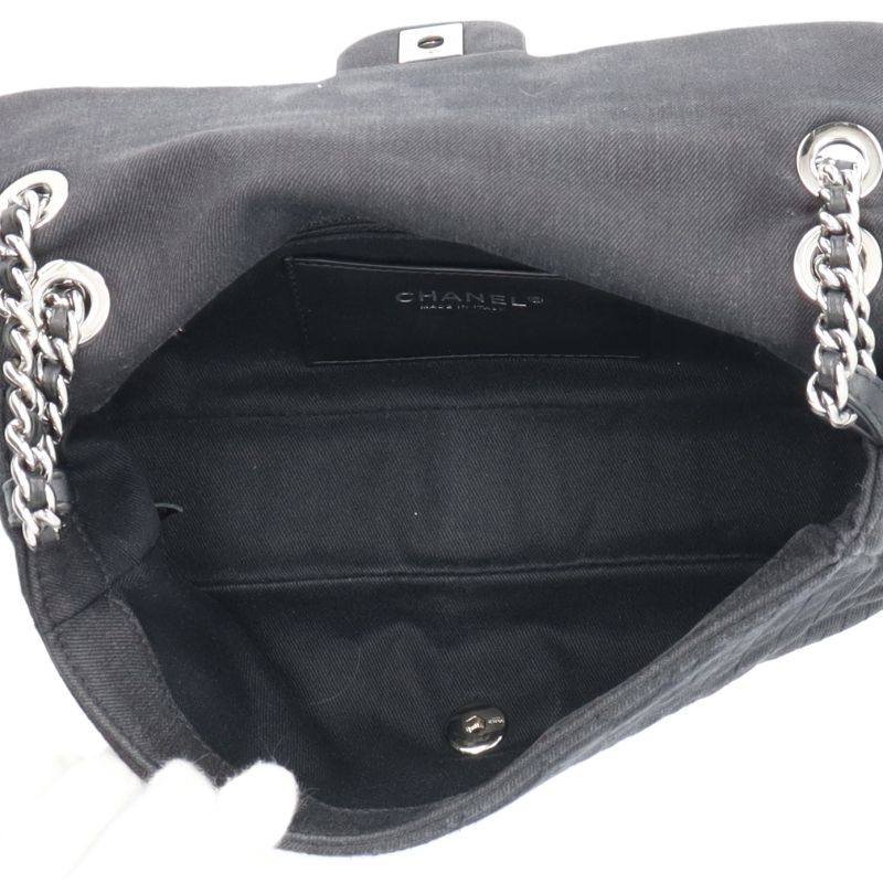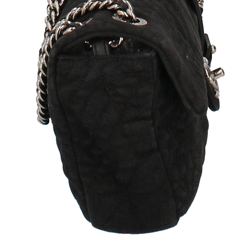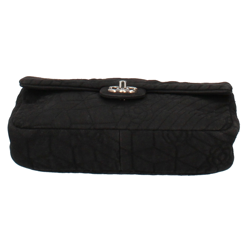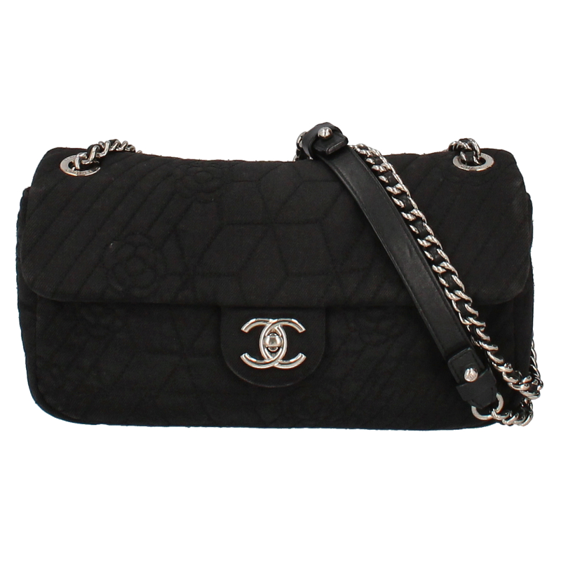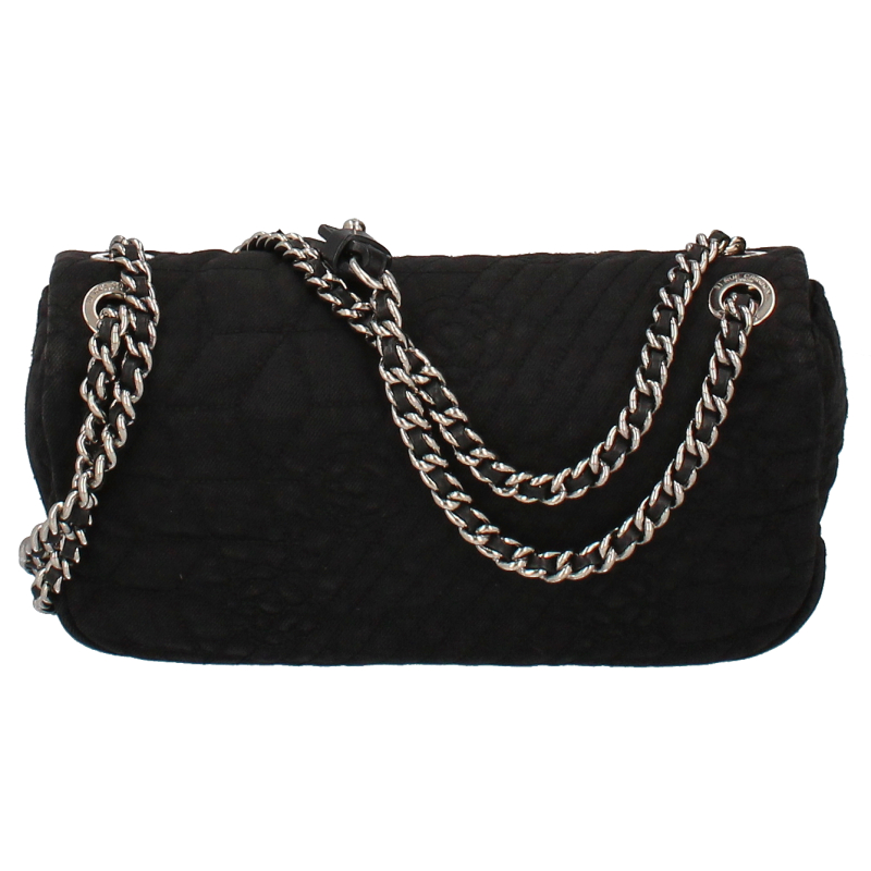 USED品。シルバー金具。全体にカメリアアイコンが刺繍され、シングルチェーンにすると斜めがけも可能です。女性らしいデザインとカジュアル感が魅力的なバッグです。