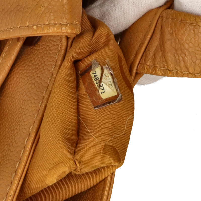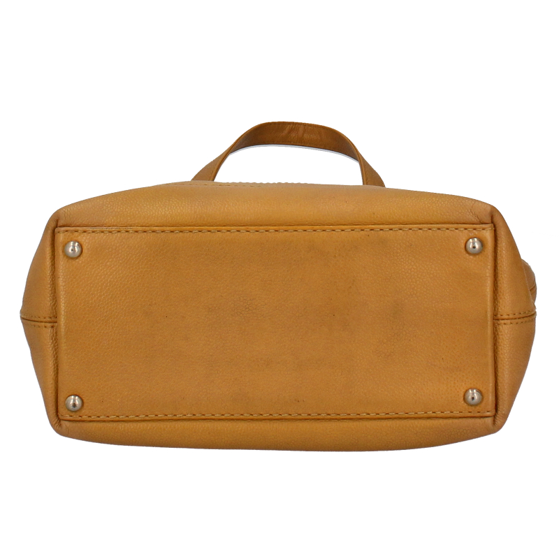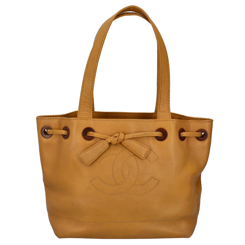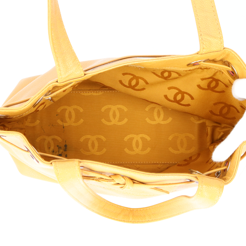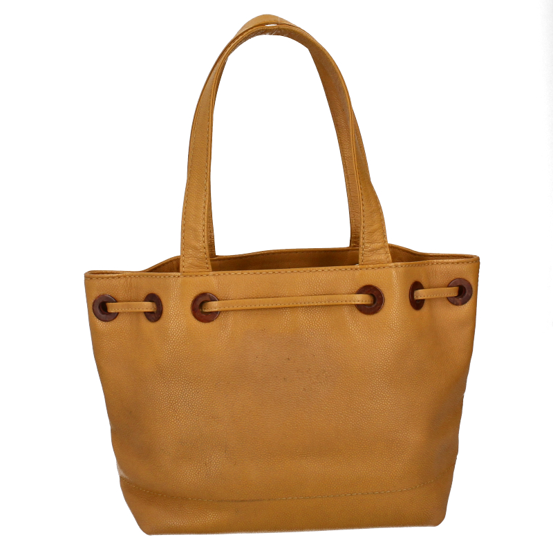 USED品。キャビアスキンを使用したデザインの巾着型にもなるトートバッグです。たっぷりと荷物が収納できます。