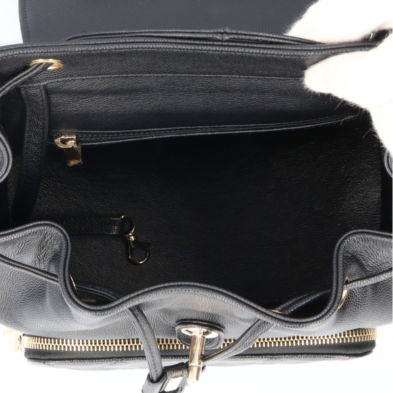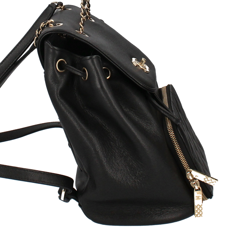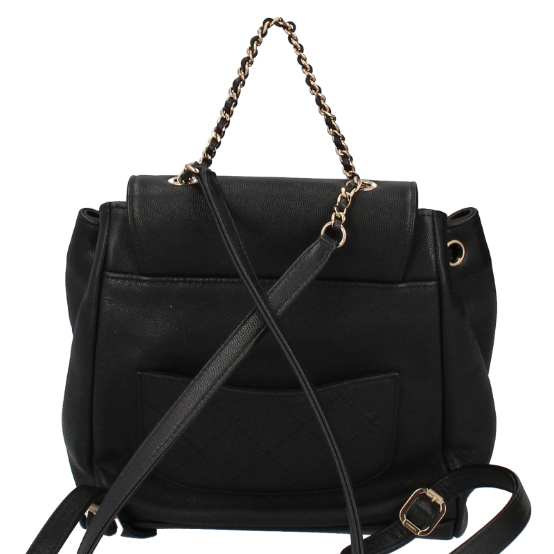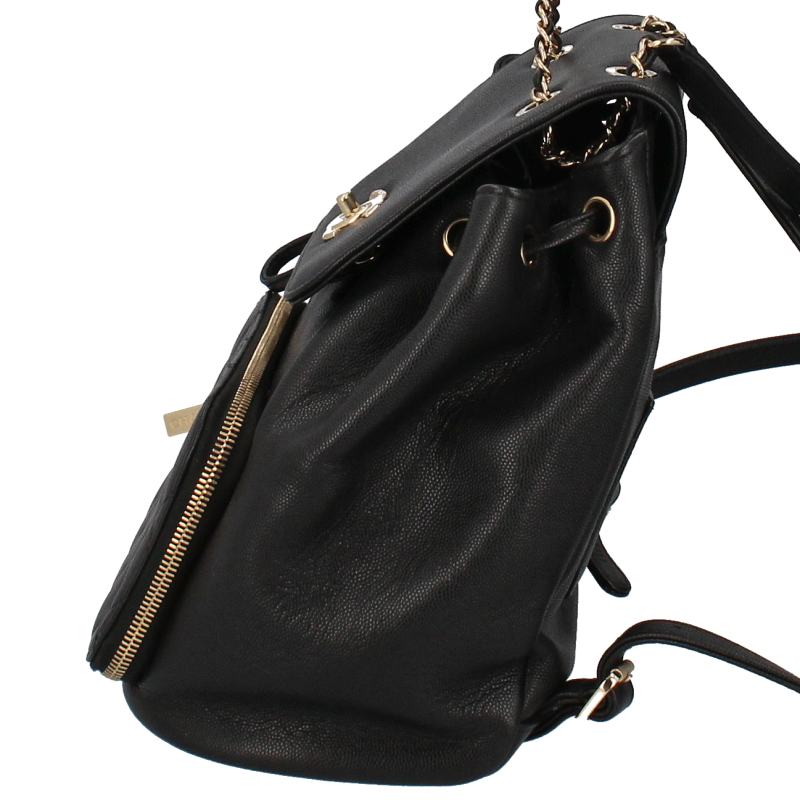 USED品。シャンパンゴールド金具。マトラッセが上品で高級感漂うチェーンバックパック。カジュアルになりすぎずファッショナブルな印象を与えるバッグです。