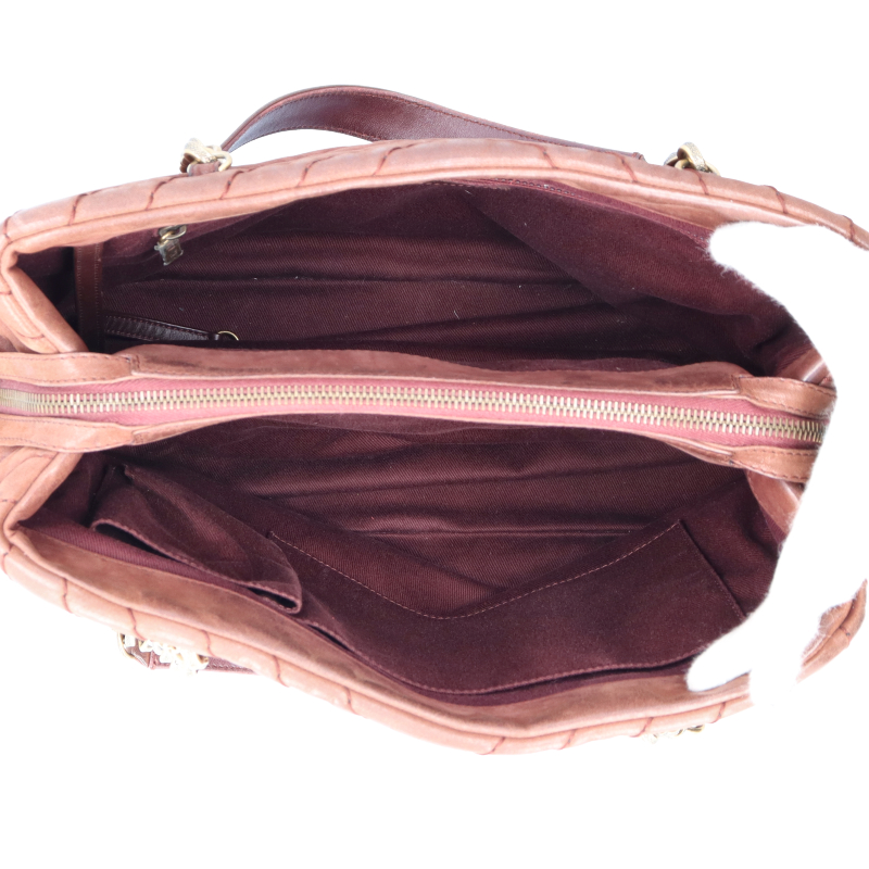 多少使用感有。角スレがあります。表面に擦り傷、黒ずみがあります。ハンドルに擦れと黒ずみがあります。シール有(14番台)。ゴールド金具。