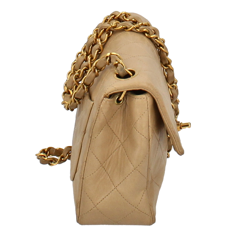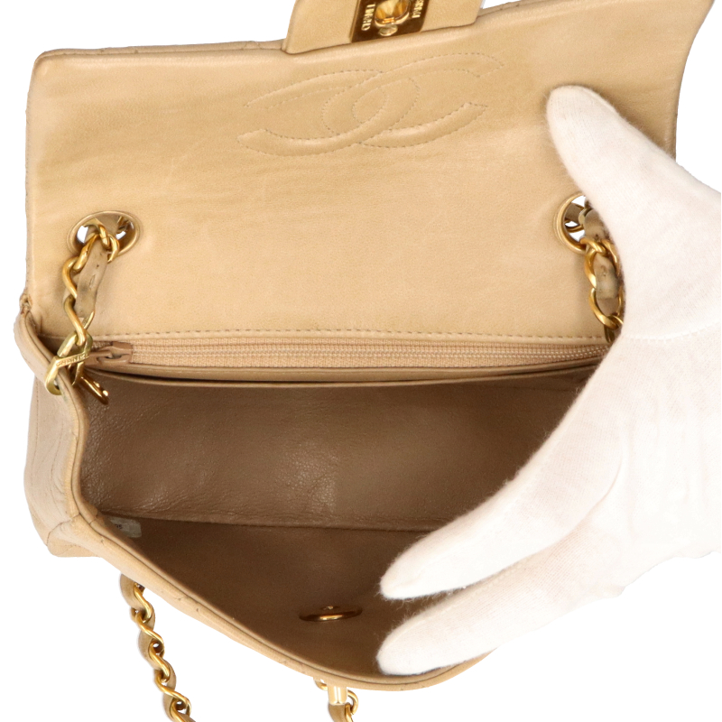 多少使用感有。ゴールド金具。角スレがあります。表面全体に黒ずみがあります。ショルダーのレザーに擦れと黒ずみがあります。フラップ内側に擦り傷があります。シール有(2番台)。