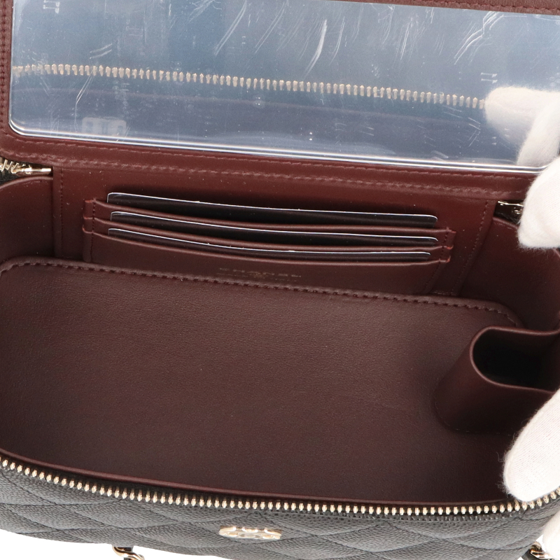 未使用に近い美品。シャンパンゴールド金具。正面ロゴと内部ミラーは保護シール付きです。2021年以降のランダム番号のシリアルシールが入ったモデルです。