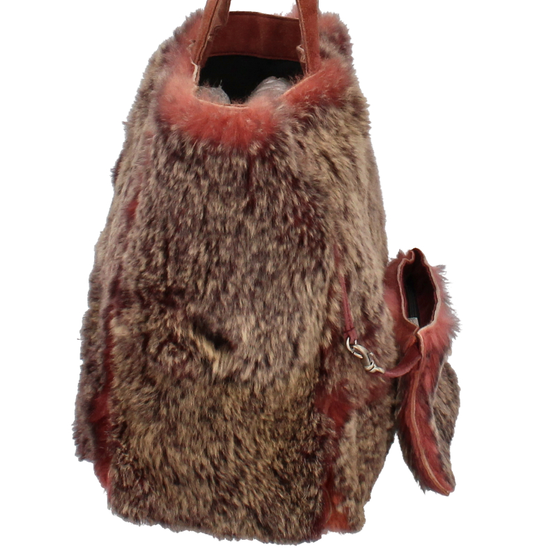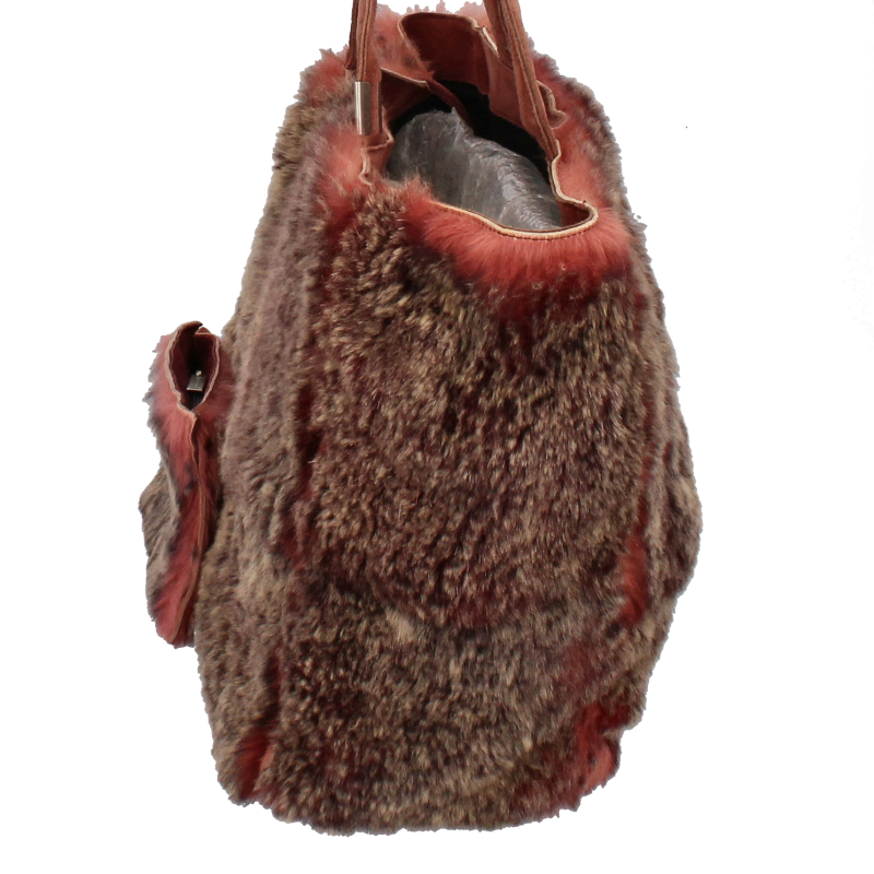 多少使用感有。ハンドルに擦れや色褪せがあります。背面の毛皮が薄くなっております。シール有(5番台)。2000年9月購入のブティックシール有。