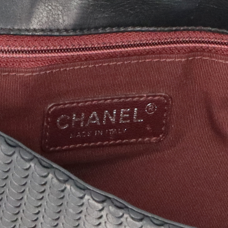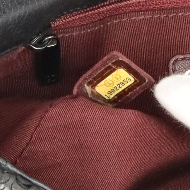 少々使用感有。シルバー金具。角スレが少々あります。型崩れが少々あります。金具に傷や黒ずみがあります。カード・シール有(19番台)。レザーを鱗調にデザインした珍しいモデルです。