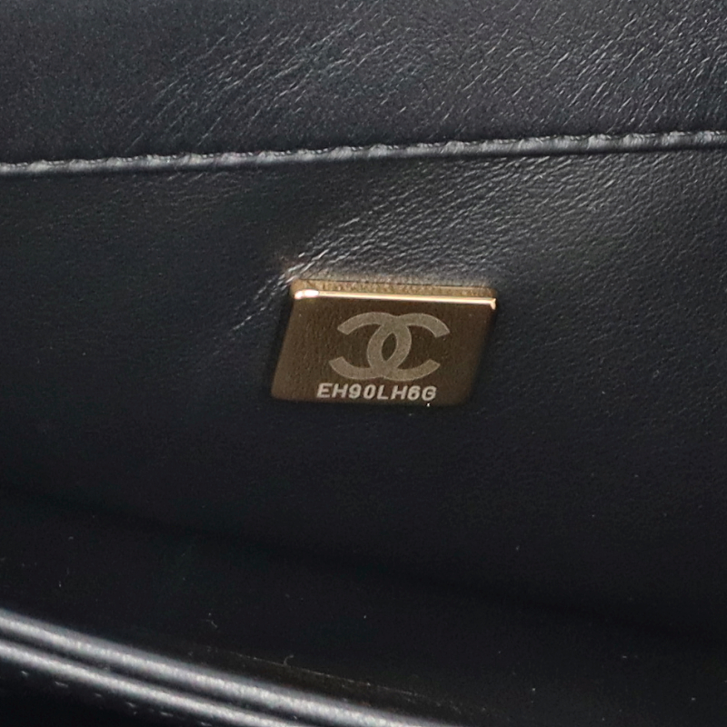 美品。シャンパンゴールド金具。2021年以降のランダム番号のプレートが入ったモデルです。ハンドルに一部剥がれがあります。フラップ内側に擦り傷があります。