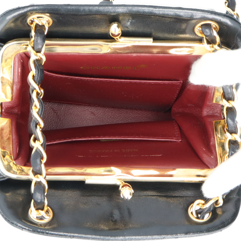 USED品。シャネルのガマ口デザインが可愛いクラッチバッグです。開閉口に配置されたココマークがブランドをアピールしてくれます。