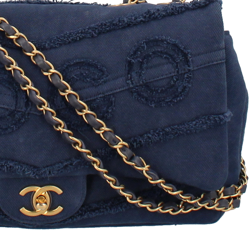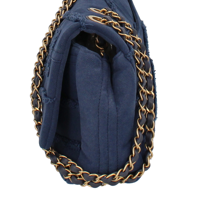 USED品。ゴールド金具。デニム生地のチェーンショルダーバッグ。普段持ちにぴったりでちょっとしたお出かけなどに世代問わずお使い頂ける逸品です。