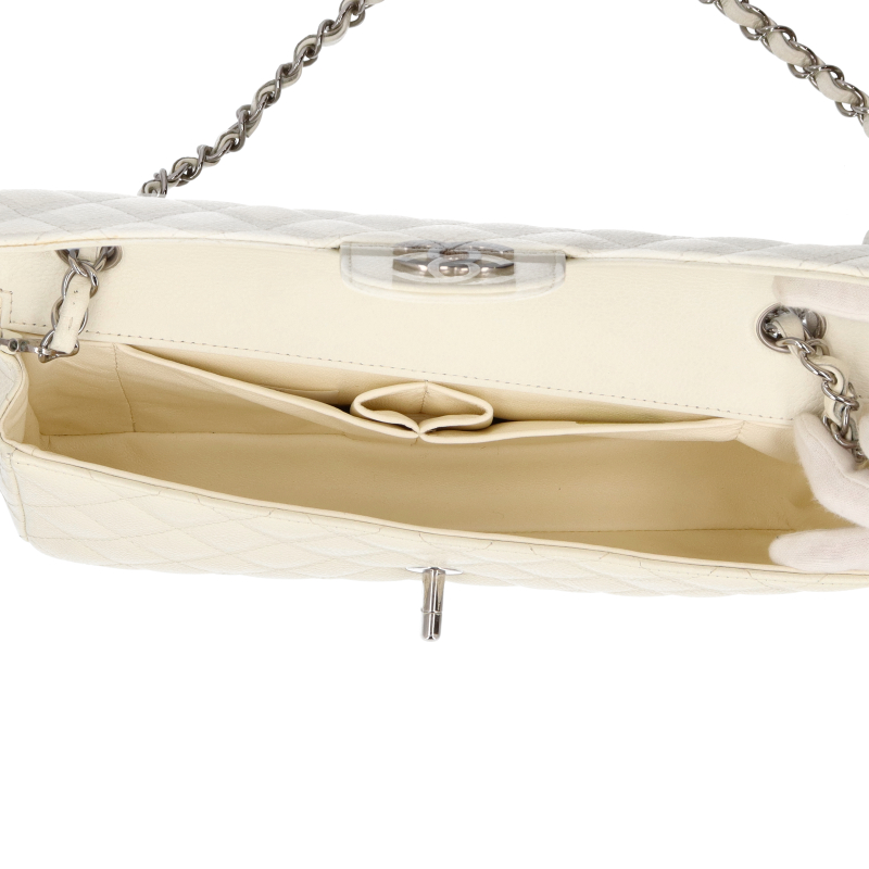 USED品。シルバー金具。何気なくの普段使いも素敵ですが、パーティーなどのフォーマルな席にもピッタリです。シャネル好きの方なら、一つは持っておきたい逸品です。ターンロック式。