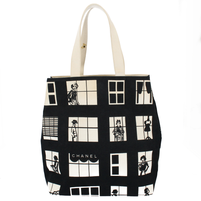 USED品。ショップの窓から見える人々をプリントしたというとても愉快なウィンドウラインのトートバッグ。大容量で使い勝手抜群です。