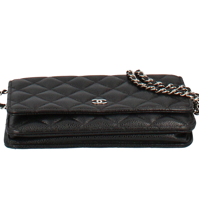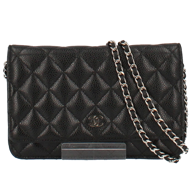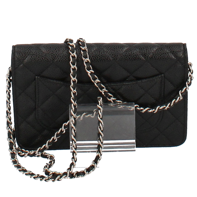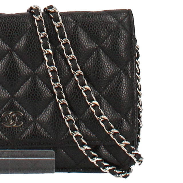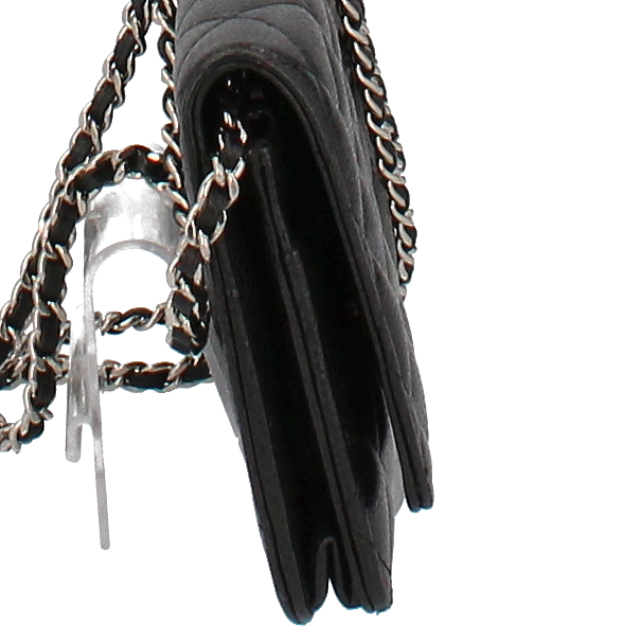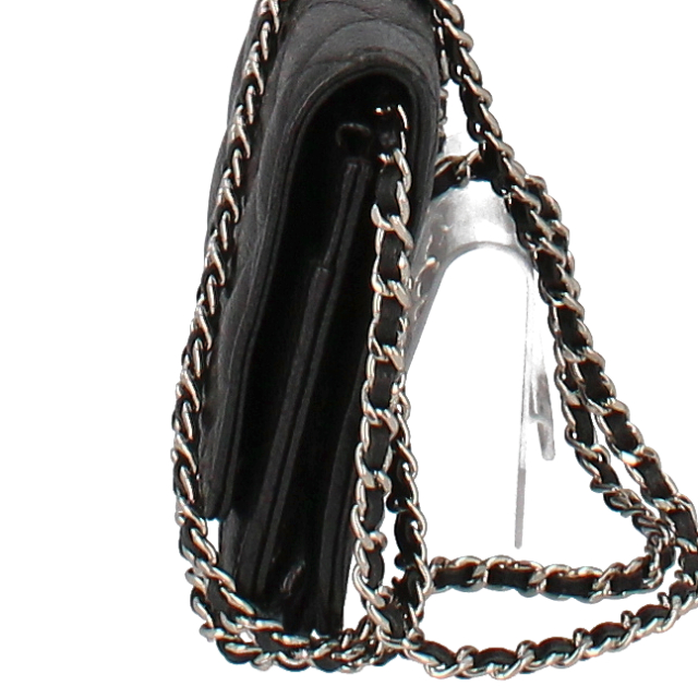 USED品。シルバー金具。カードポケット・ファスナー小銭入れが内部にある、チェーンショルダー付きのお財布です。斜め掛けにしたり、ショルダーにも出来ます。