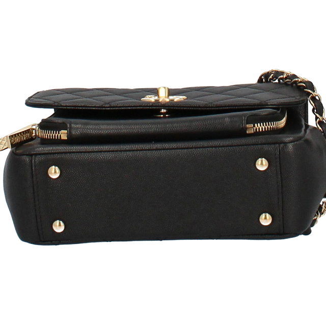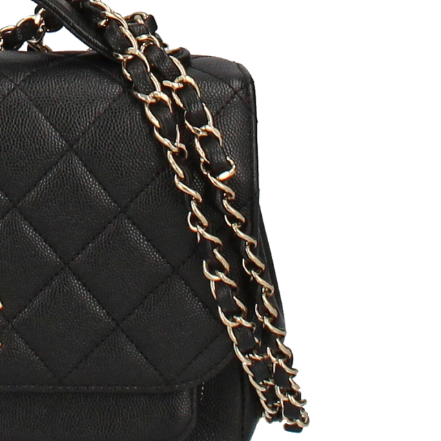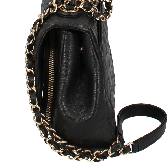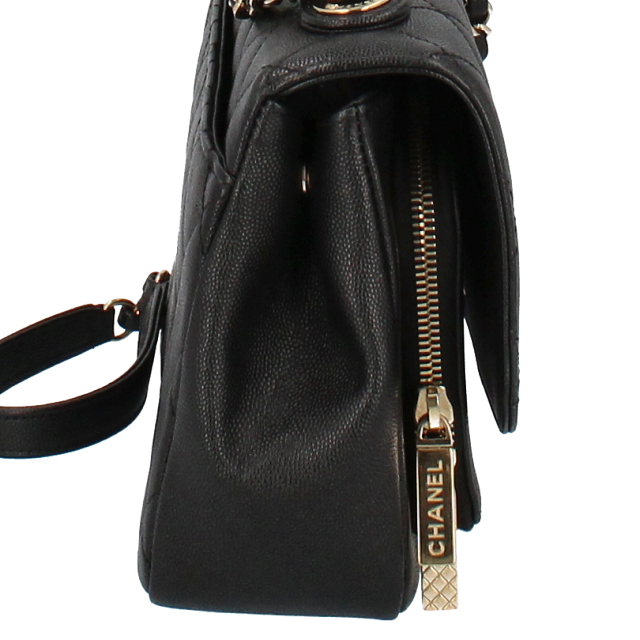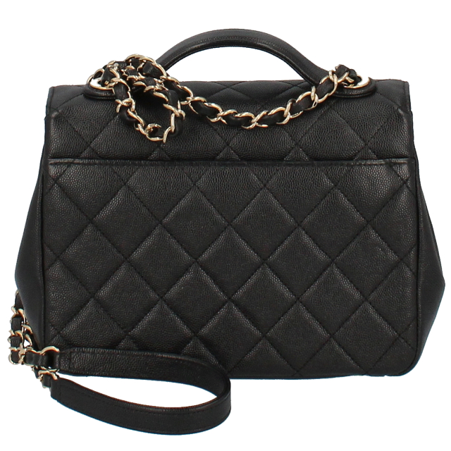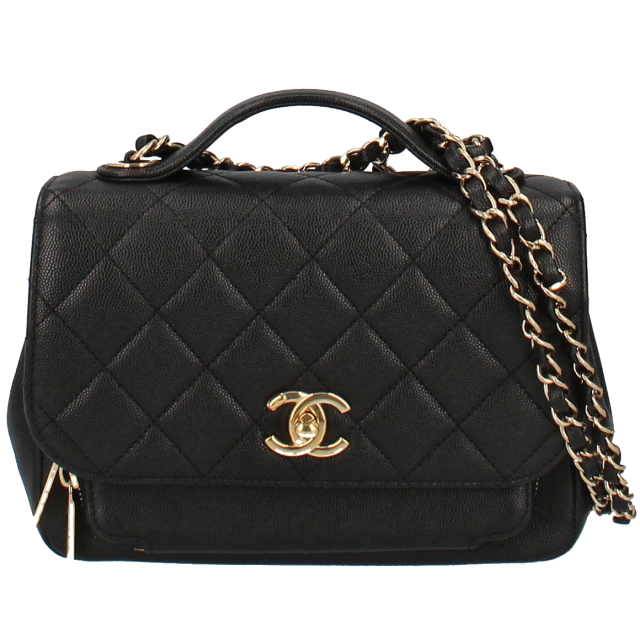 USED品。ゴールド金具。ふっくらとしたフォルムにブラックのキャビアスキンとゴールド金具が上品なバッグ。ハンドルスタイル・肩掛けと装いや気分によって2WAYでお楽しみ頂けます。