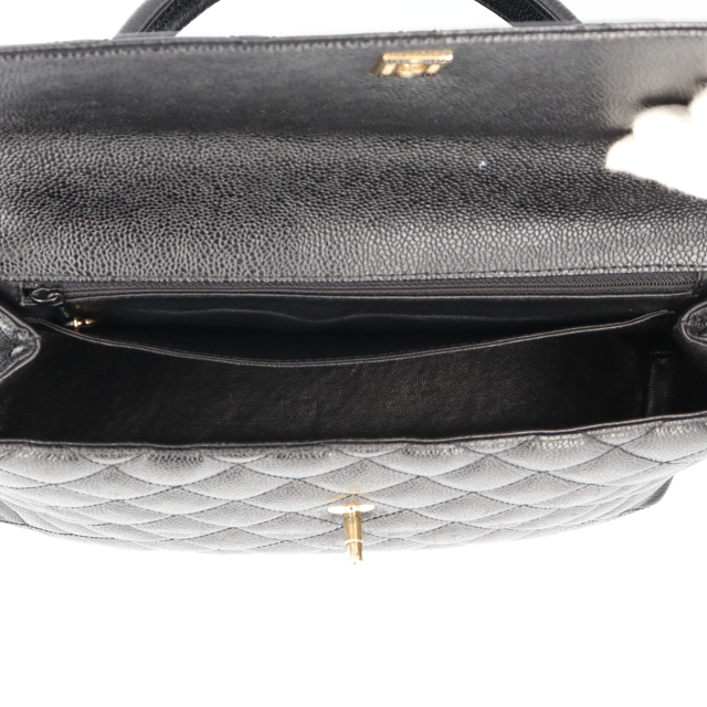 USED品。ゴールド金具。正面のココマークが上品でシンプルなデザインなので流行に左右されず永くご愛用頂けるバッグです。