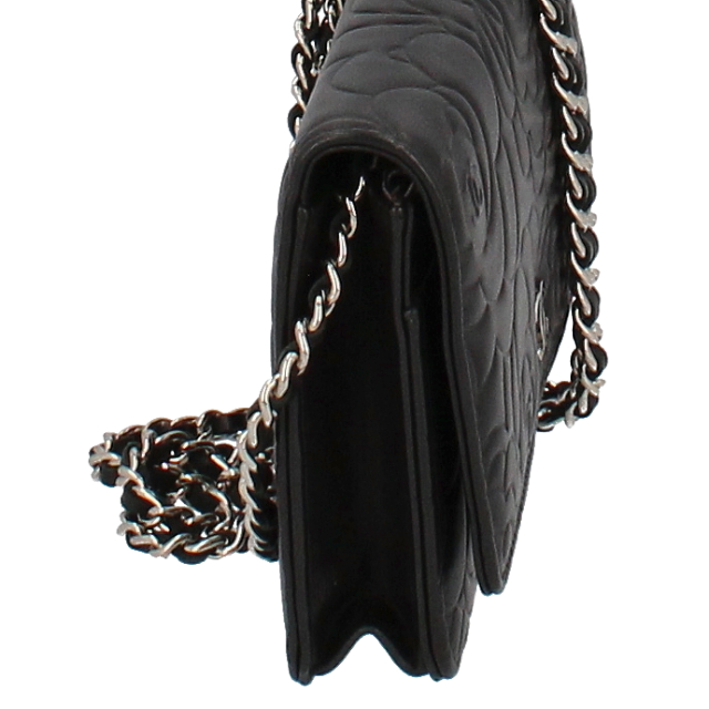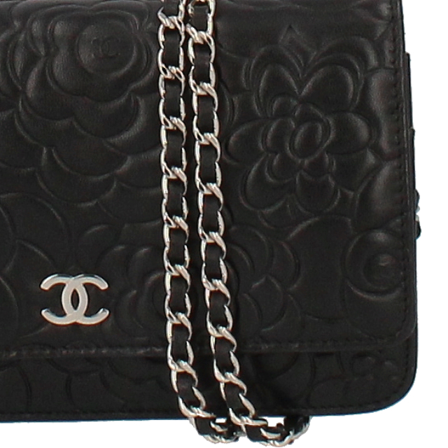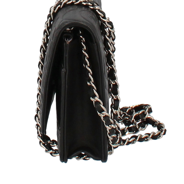 USED品。シルバー金具。カードポケット・ファスナー小銭入れが内部にある、チェーンショルダー付きのお財布です。斜め掛けにしたり、ショルダーにも出来ます。
