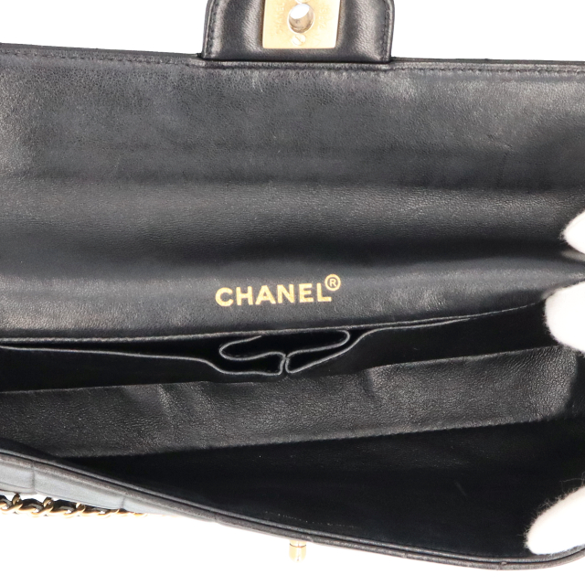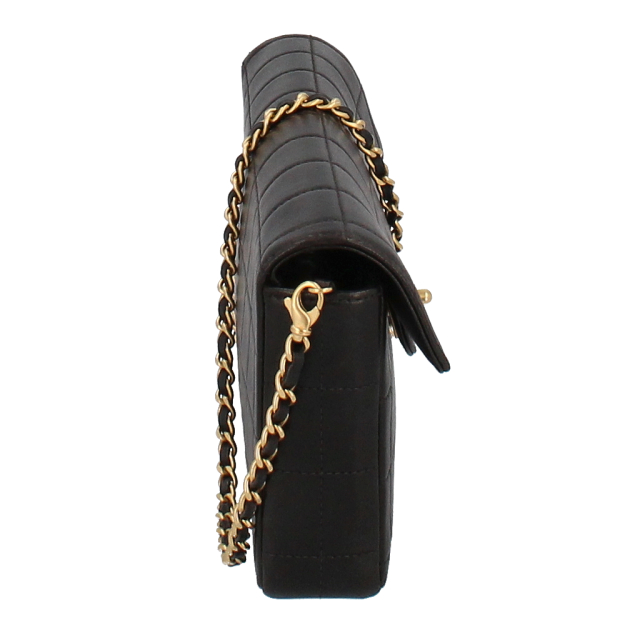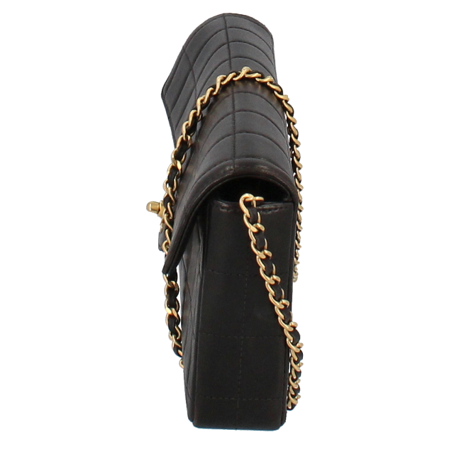 USED品。ゴールド金具。シンプルでクールなイメージのチョコバーライン。シャネルらしさが随所に入ったデザインとなります。