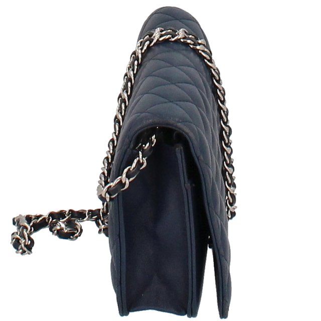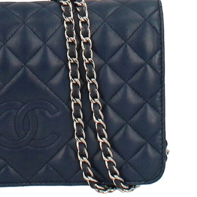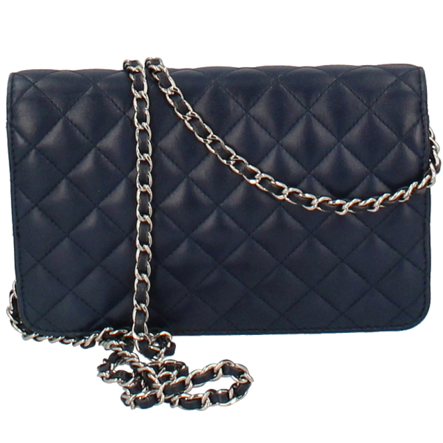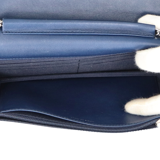 USED品。シルバー金具。カードポケット・ファスナー小銭入れが内部にある、チェーンショルダー付きのお財布です。斜め掛けにしたり、ショルダーにも出来ます。
