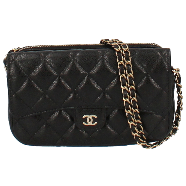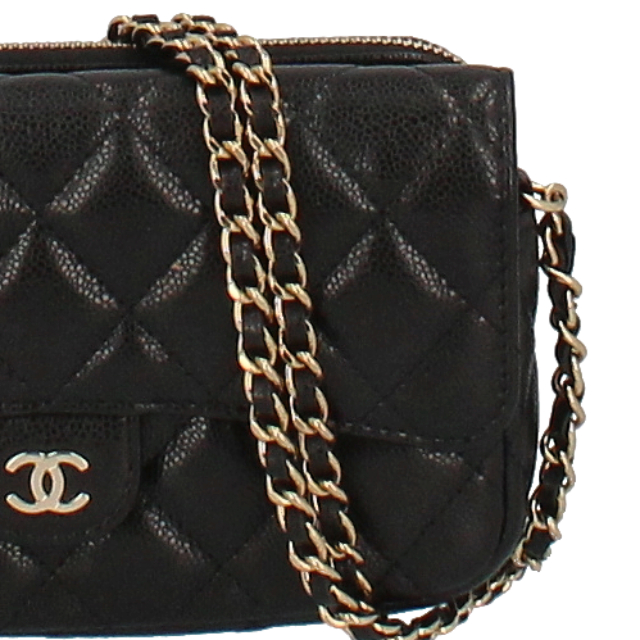 USED品。シルバー金具。チェーンの長さも丁度よく、スマートフォンを入れてショルダーになるかわいいケースです。カードなども収納できお財布としても使えます。