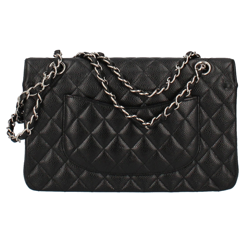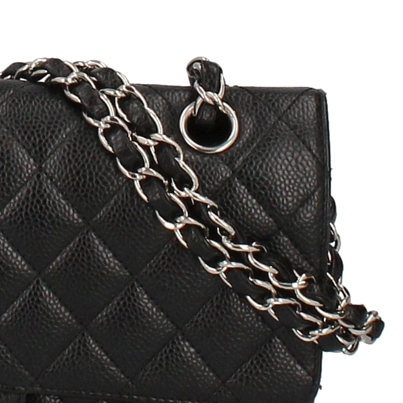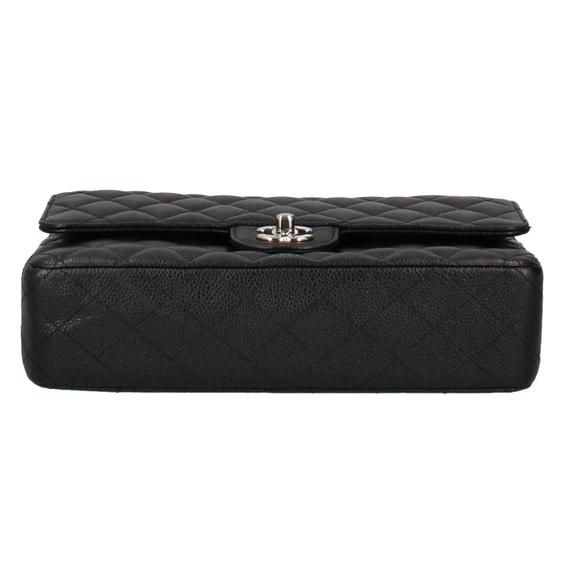 USED品。シルバー金具。大人気の定番アイテム「マトラッセ」。丈夫なキャビアスキン素材にシックなブラックカラー、シルバー金具を合わせたシャネル極上の逸品です。