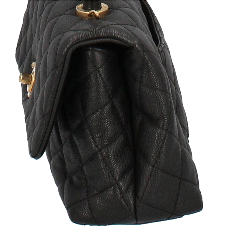 USED品。ゴールド金具。2WAY仕様です。ボリューム感のある素材が高級感を演出し、シャネルの良い所がギュッと詰まったデザインです。