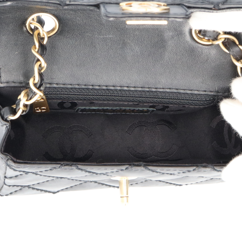 USED品。ゴールド金具。シャネルの中でも人気の高いミニマトラッセチェーンショルダーバッグです。斜めがけが出来て小さめなバッグが可愛らしさを演出します。