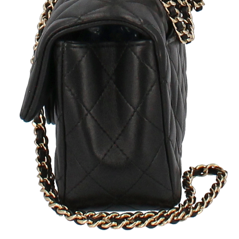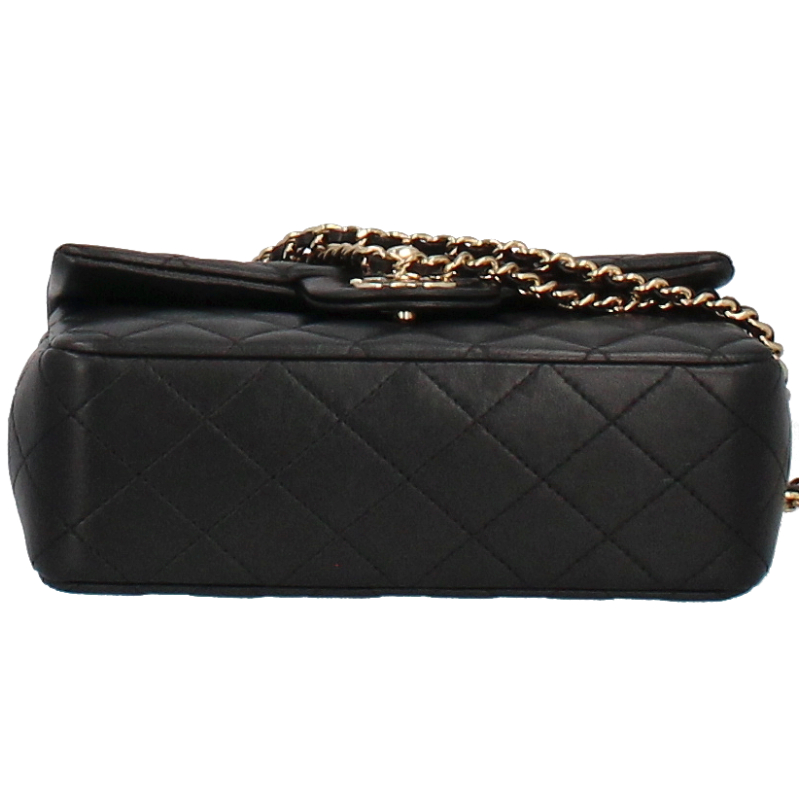 USED品。シャンパンゴールド金具。大人気のチェーンショルダーバッグ。女性が両手を自由に使えるようにと考案されたチェーンショルダーは今もなお絶大な人気です。