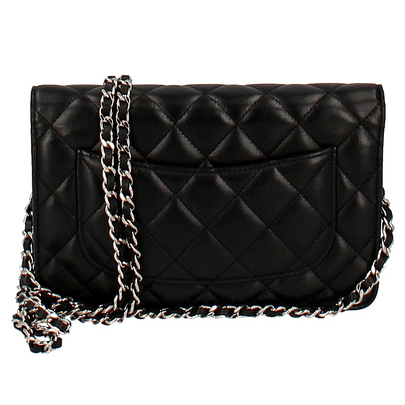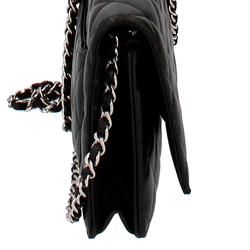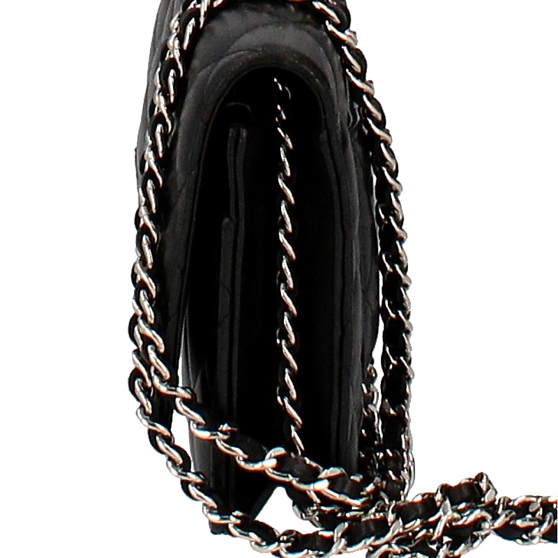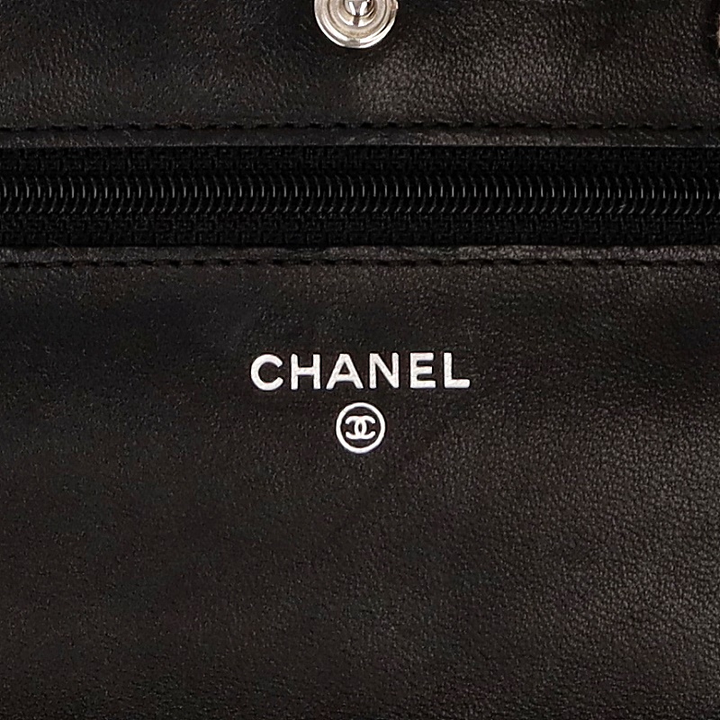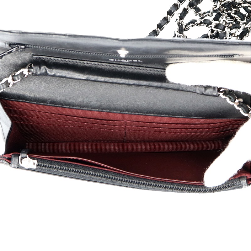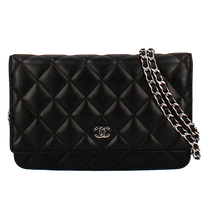 USED品。シルバー金具。カードポケット・ファスナー小銭入れが内部にある、チェーンショルダー付きのお財布です。斜め掛けにしたり、ショルダーにも出来ます。