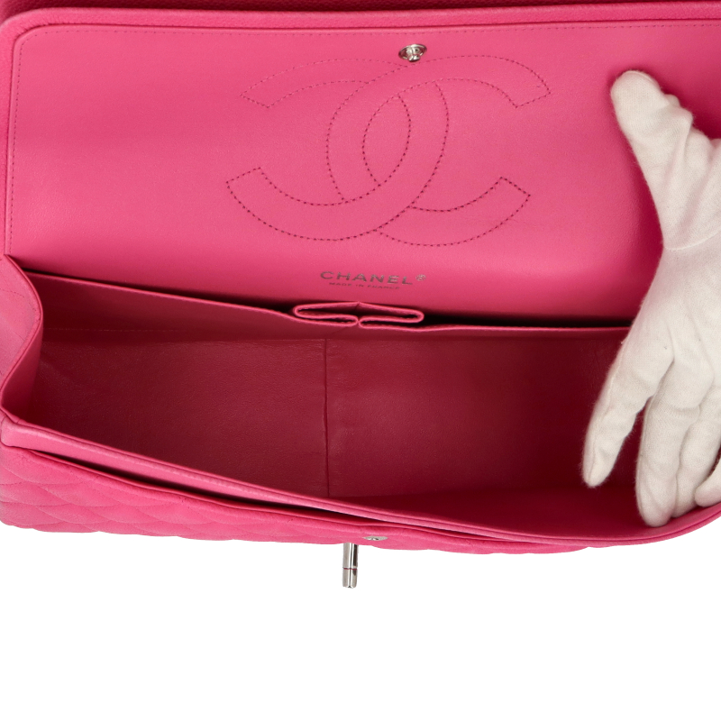 USED品。シルバー金具。何気なくの普段使いも素敵ですが、パーティーなどのフォーマルな席にもピッタリです。シャネル好きの方なら、一つは持っておきたい逸品です。 ダブルフラップのタイプになります。