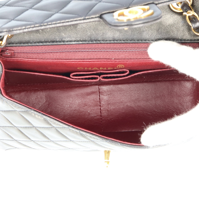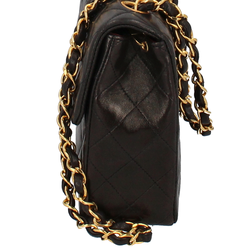 USED品。ゴールド金具。シャネルの中でも人気の高いミニマトラッセチェーンショルダーバッグです。斜めがけが出来て小さめなバッグが可愛らしさを演出します。