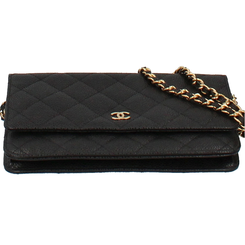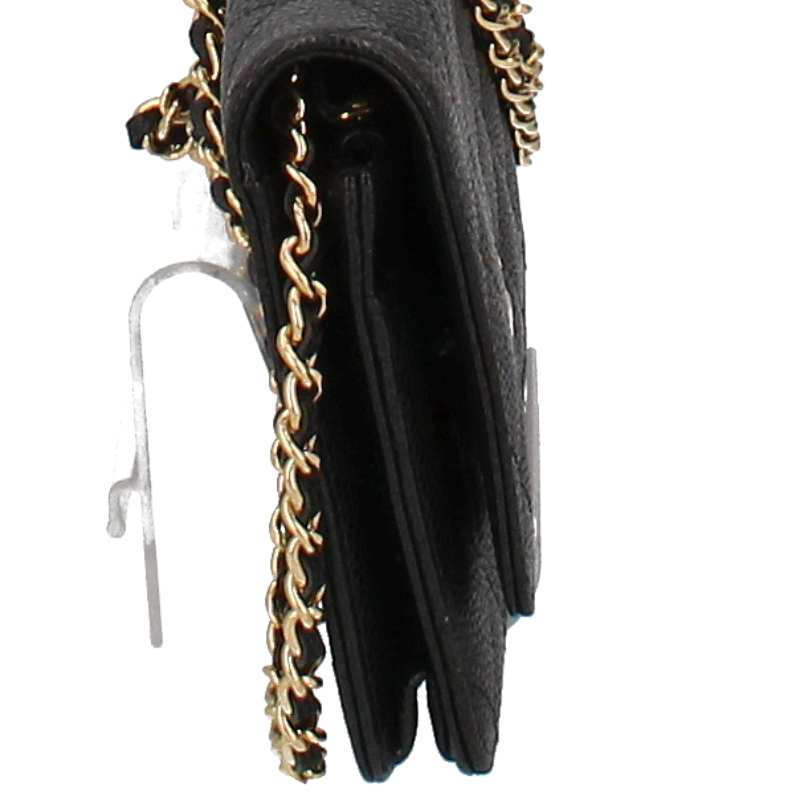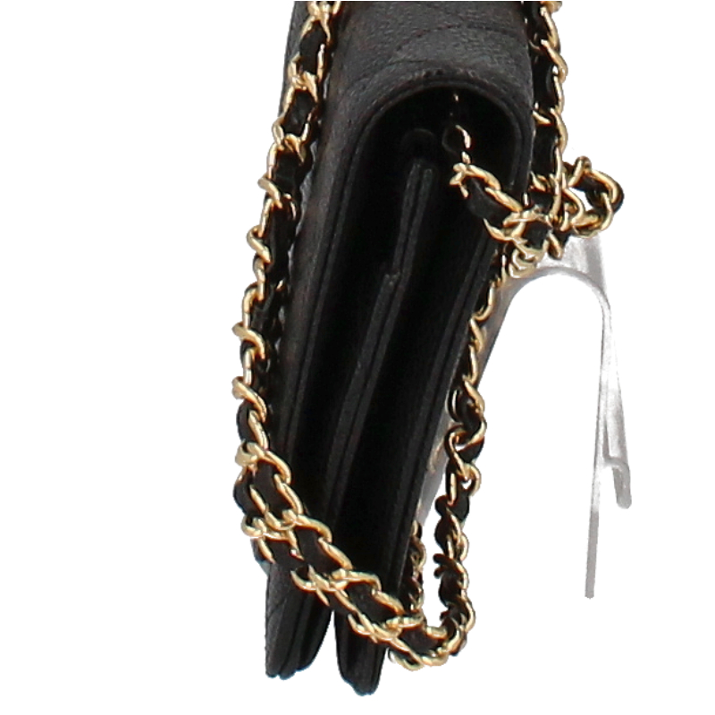 USED品。ゴールド金具。チェーンの長さも丁度よく、スマートフォンを入れてショルダーになるかわいいケースです。カードなども収納できお財布としても使えます。
