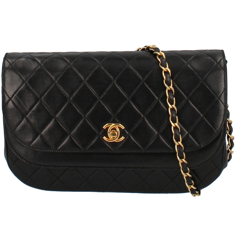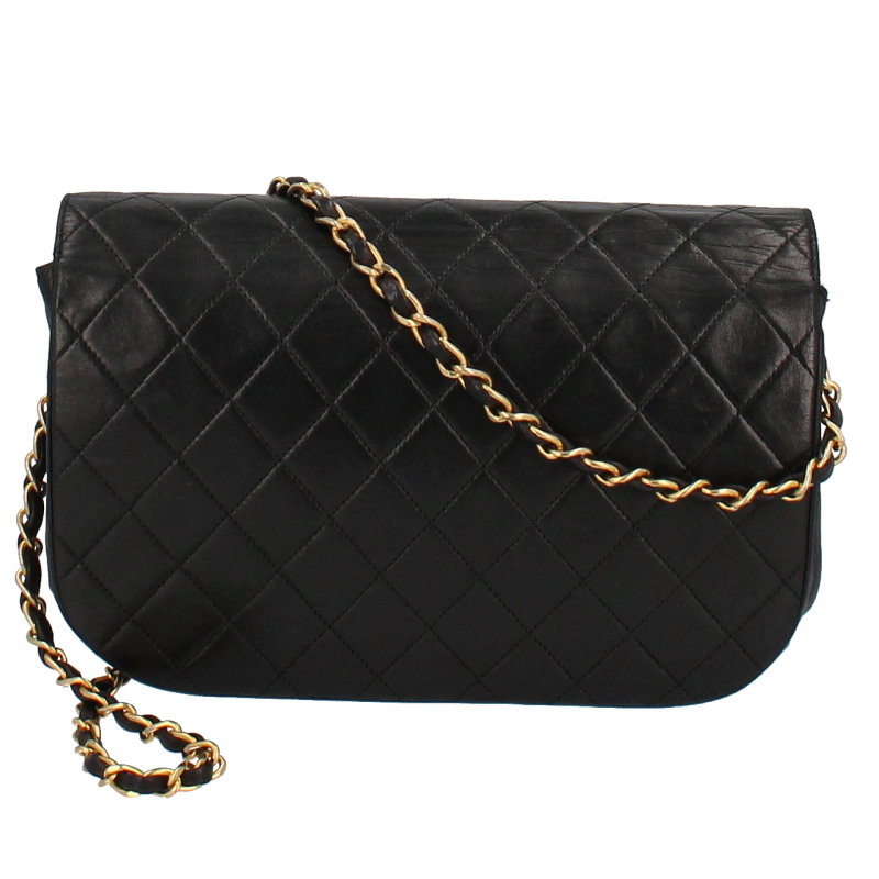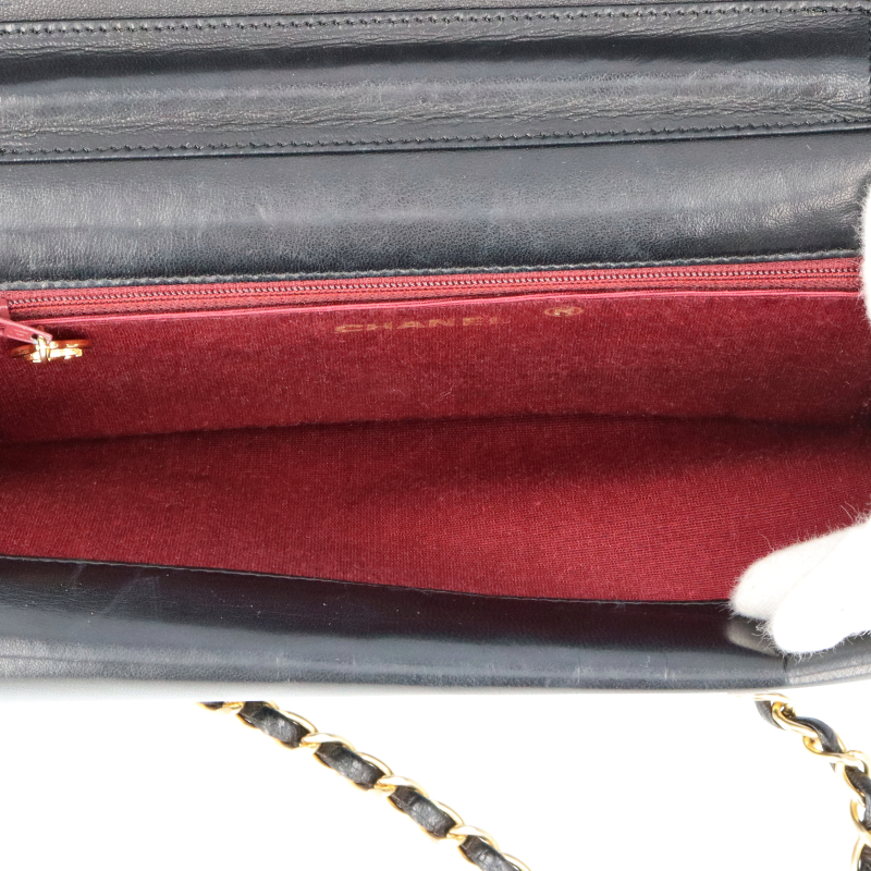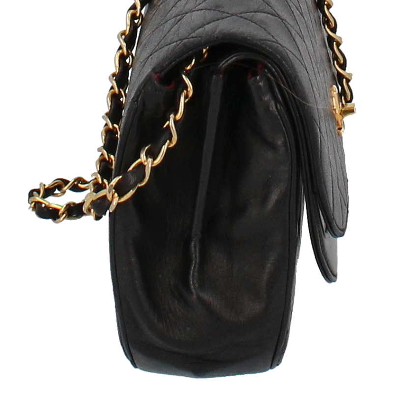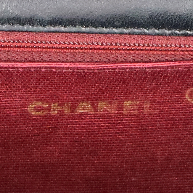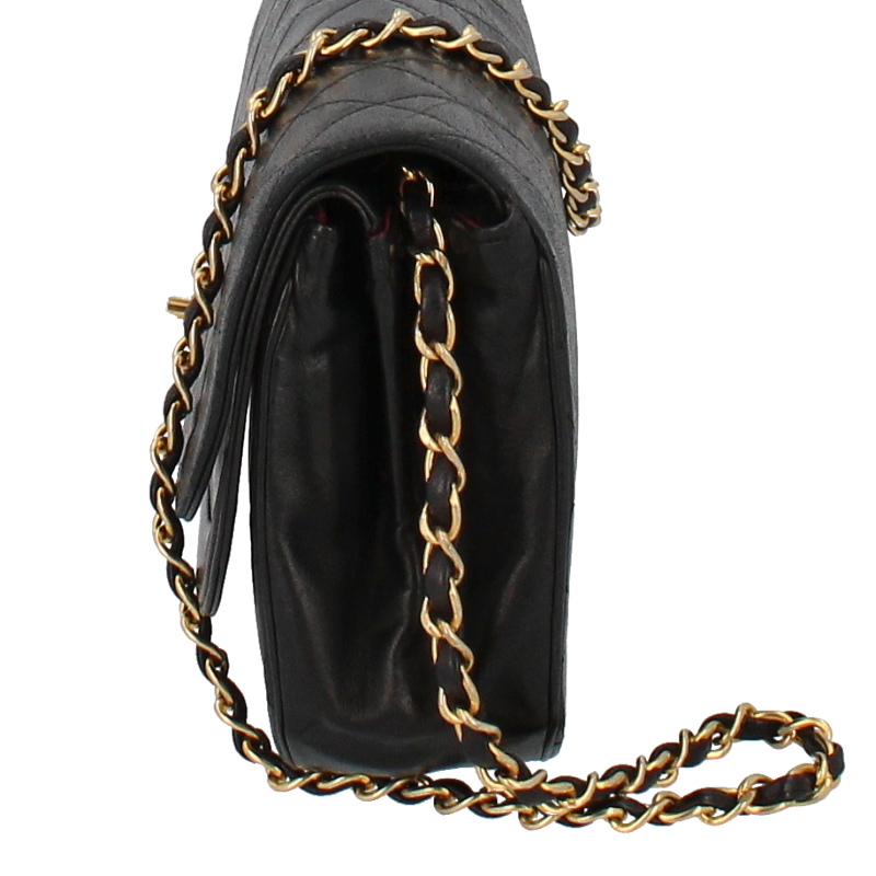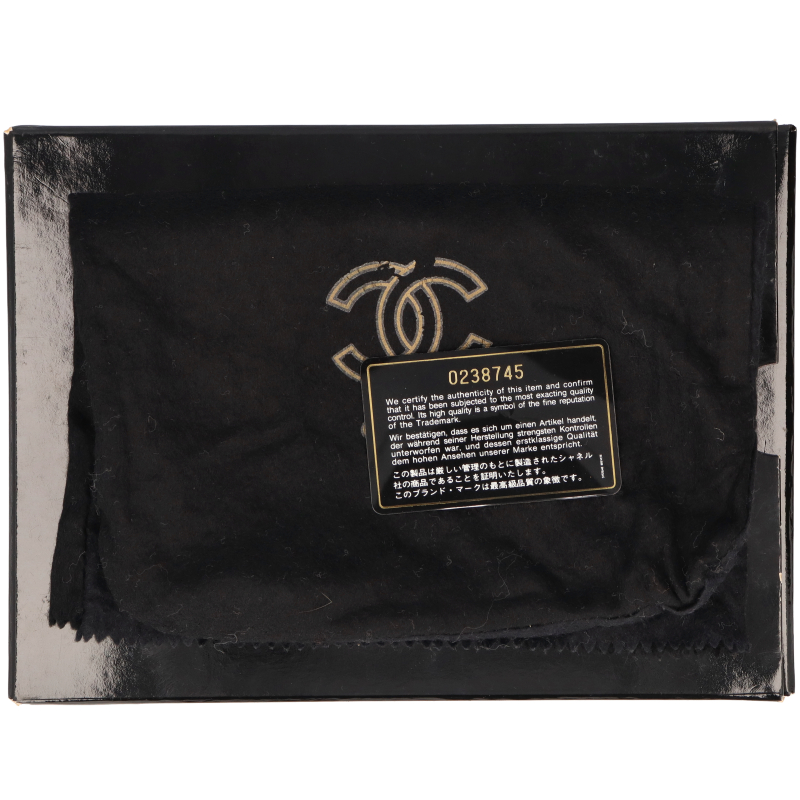 USED品。ゴールド金具。大人気の定番アイテム「マトラッセ」。丈夫なラムスキン素材にシックなブラックカラー、ゴールド金具を合わせたシャネル極上の逸品です。