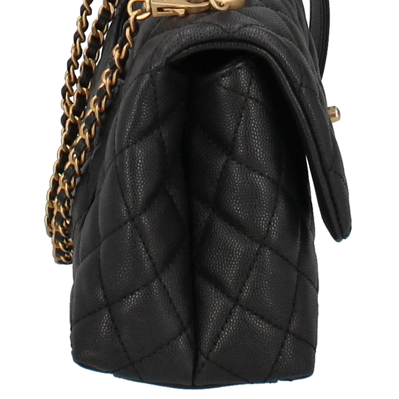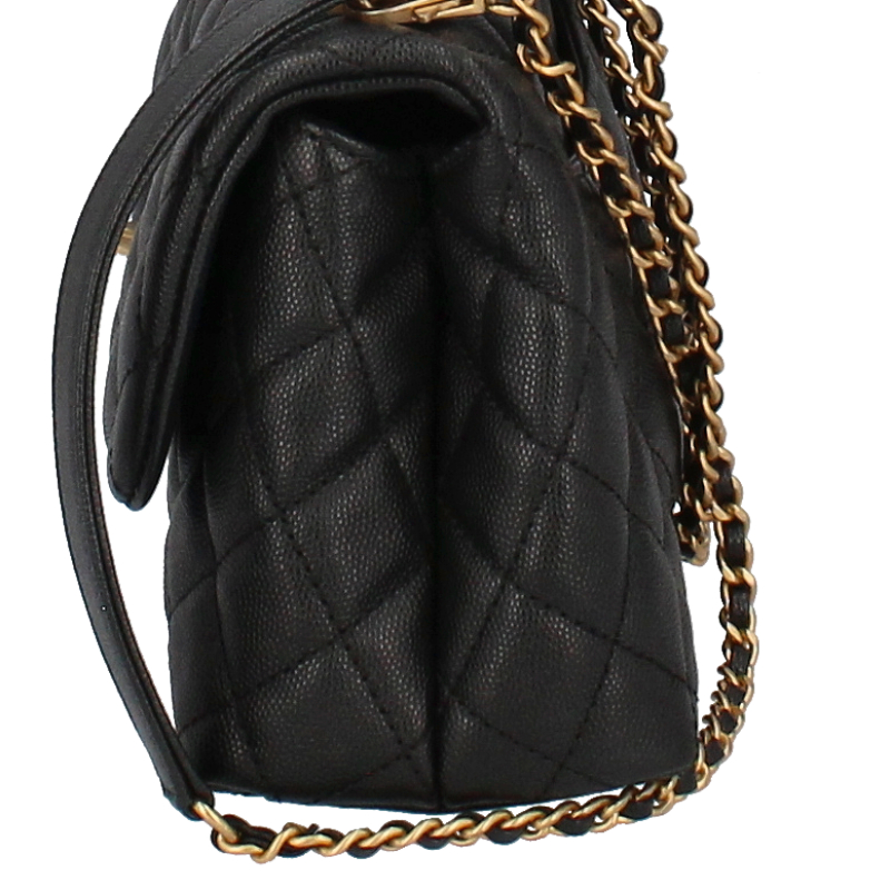 USED品。ゴールド金具。2WAY仕様です。ボリューム感のある素材が高級感を演出し、シャネルの良い所がギュッと詰まったデザインです。