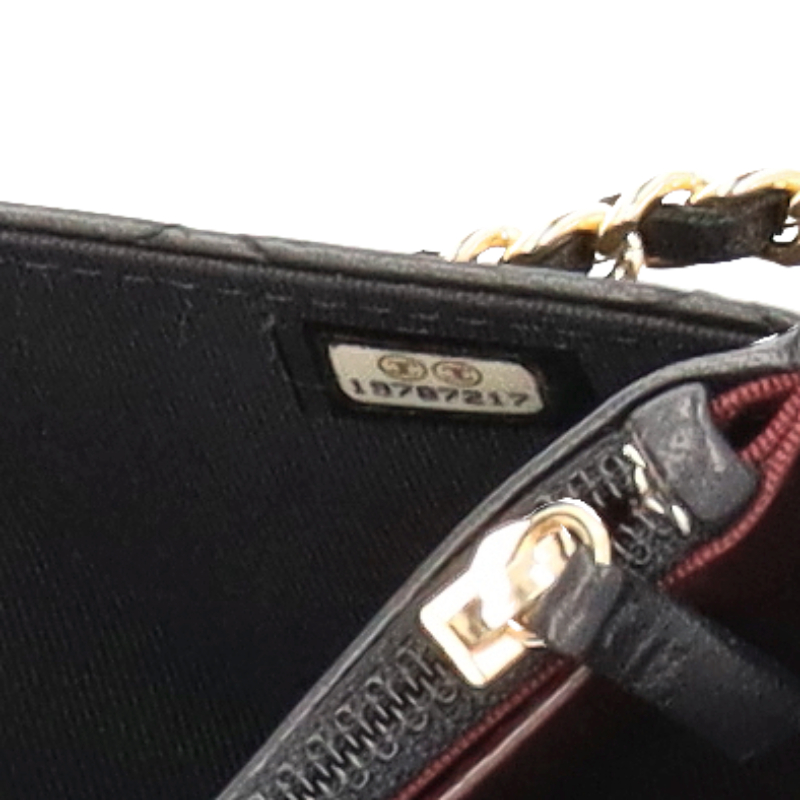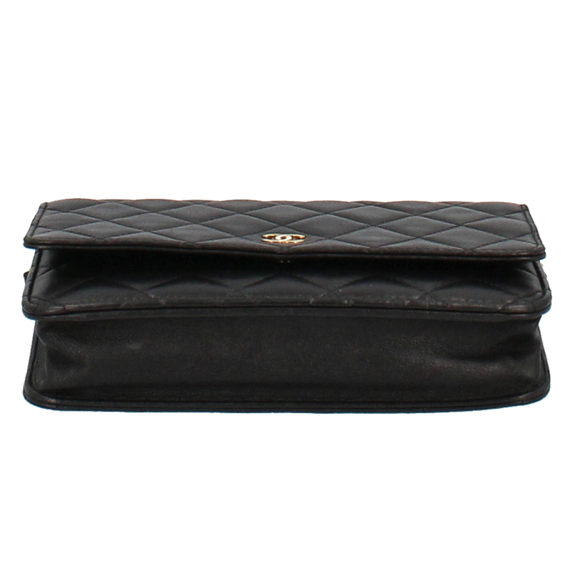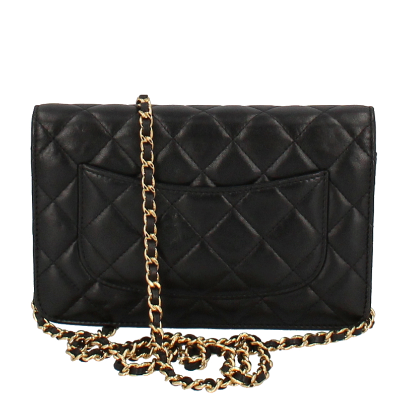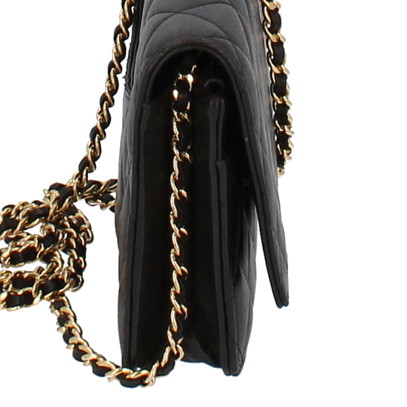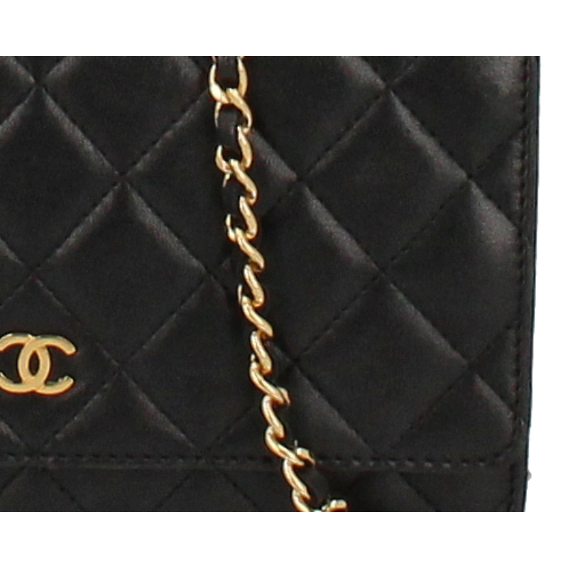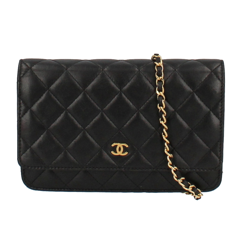USED品。ゴールド金具。カードポケット・ファスナー小銭入れが内部にある、チェーンショルダー付きのお財布です。斜め掛けにしたり、ショルダーにも出来ます。