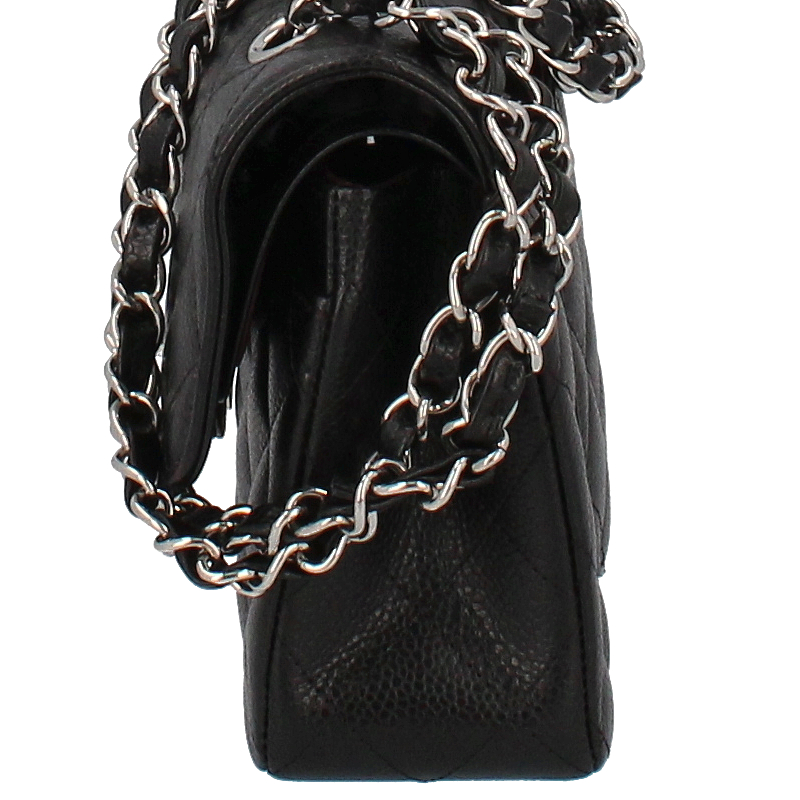 USED品。シルバー金具。何気なくの普段使いも素敵ですが、パーティーなどのフォーマルな席にもピッタリです。シャネル好きの方なら、一つは持っておきたい逸品です。