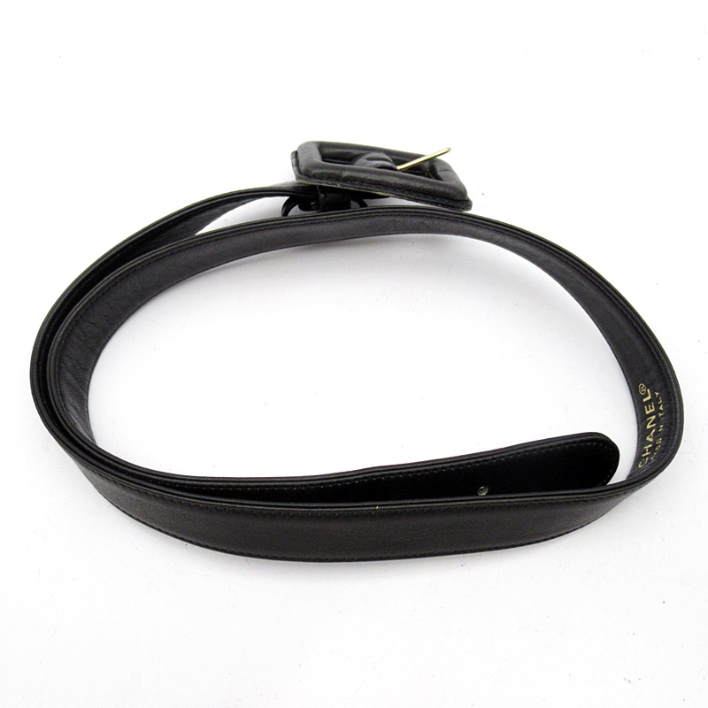 USED品。ゴールド金具。上質なブラックカラーのレザーにココマーク金具が華やかで高級感溢れる逸品。ベルトはウエストにぴったりフィットするように調節可能で、ファッションのアクセントにお勧めの逸品です。