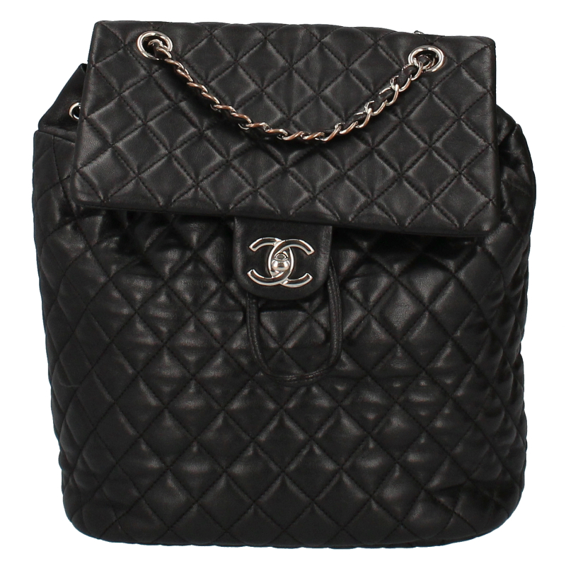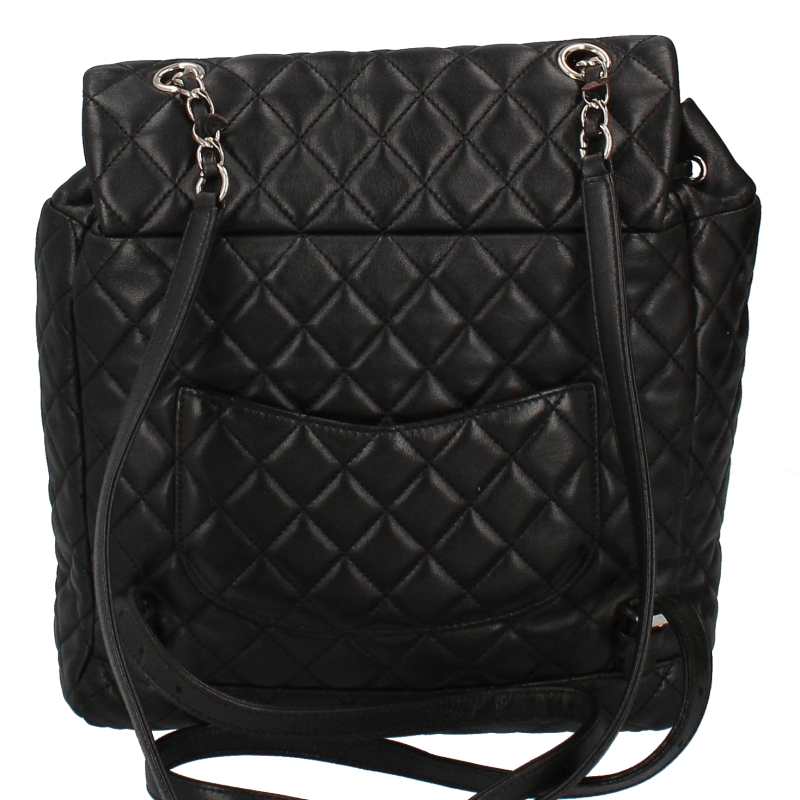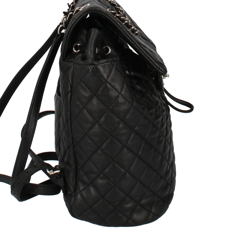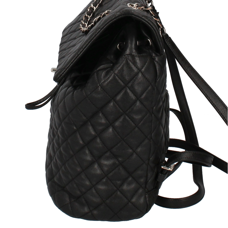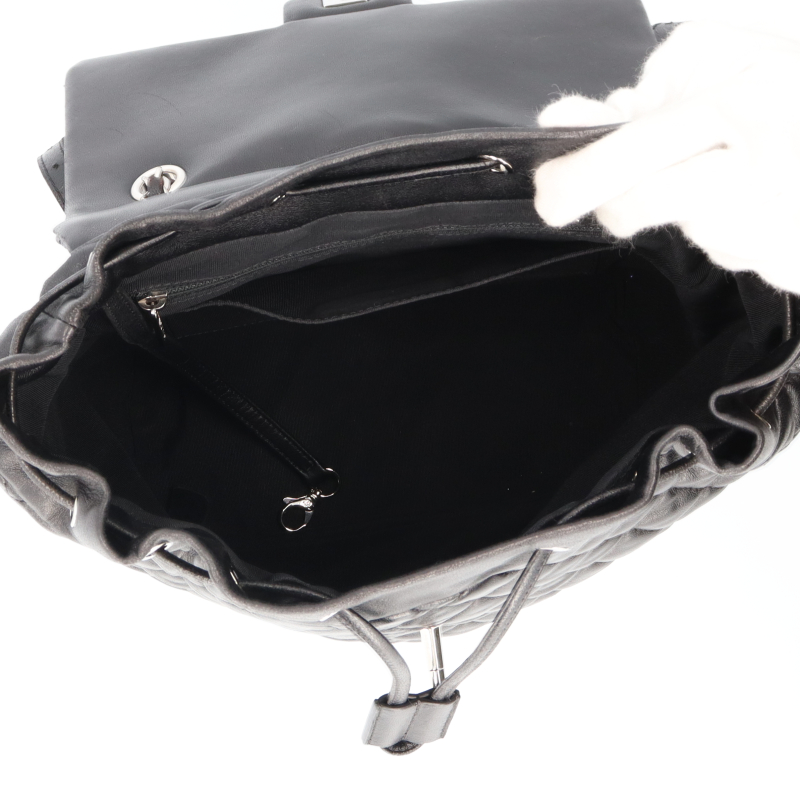 USED品。シルバー金具。マトラッセが上品で高級感漂うチェーンバックパック。カジュアルになりすぎずファッショナブルな印象を与えるバッグです。