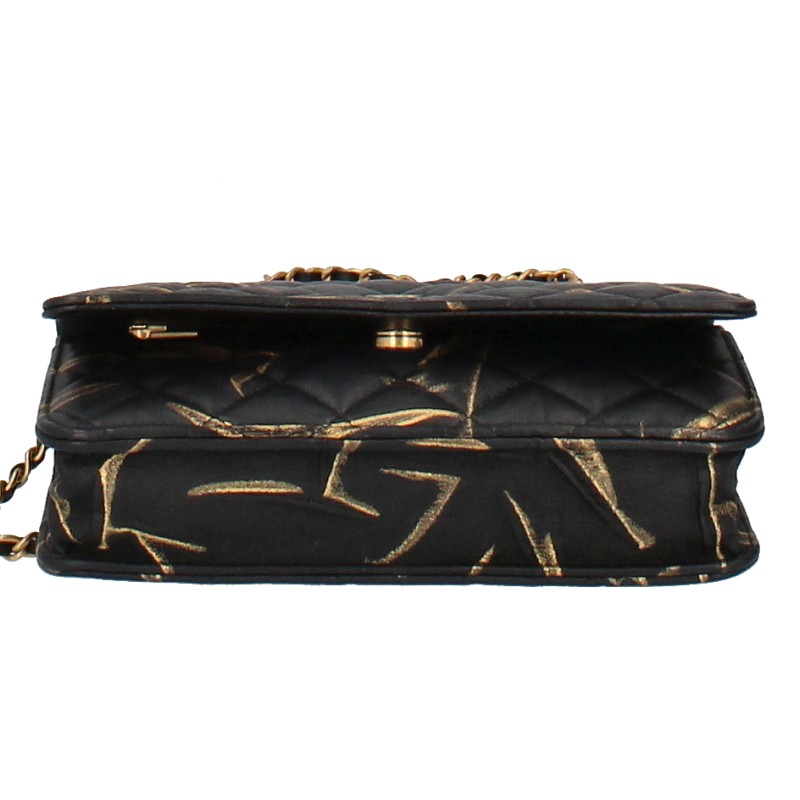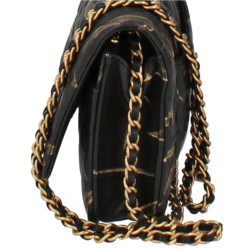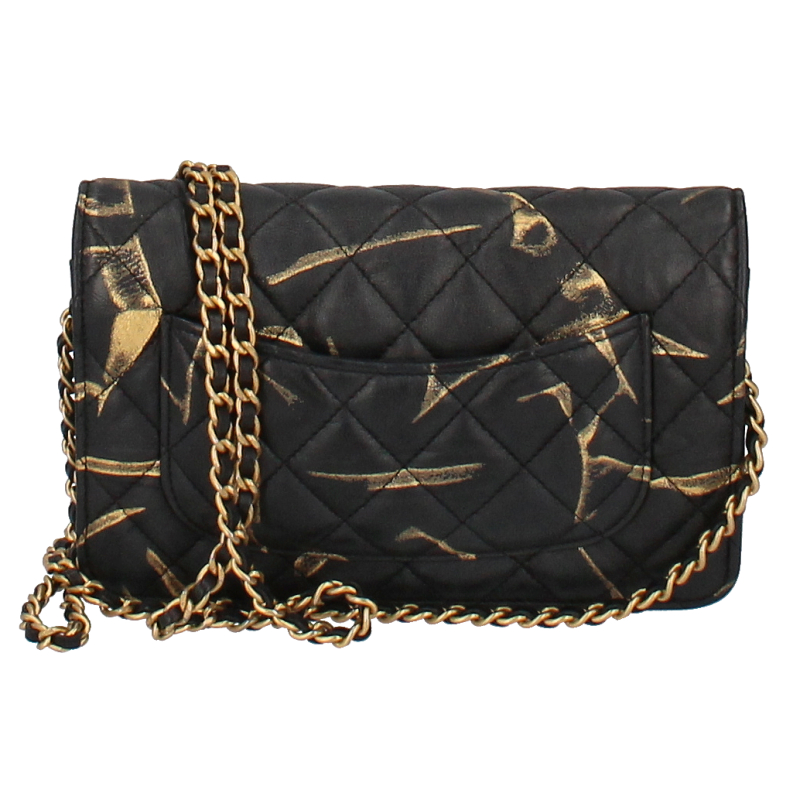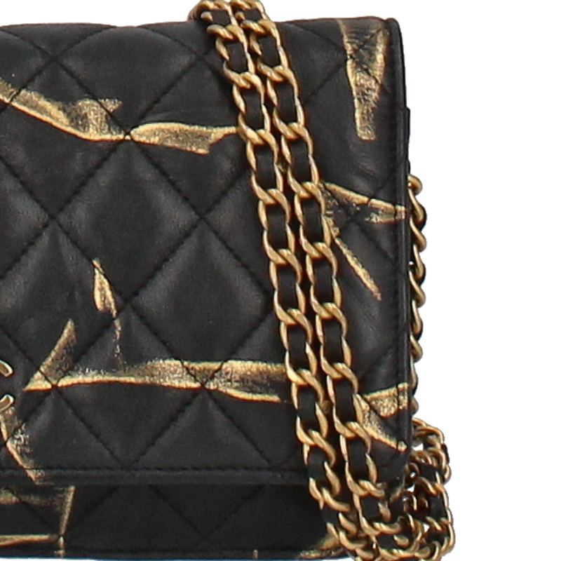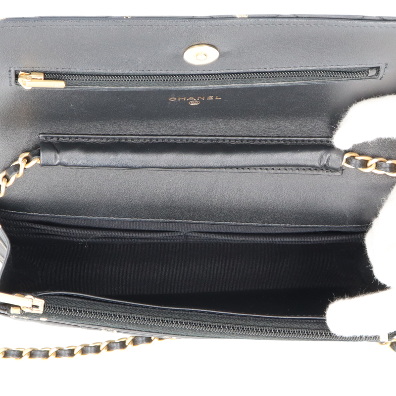 USED品。ゴールド金具。カードポケット・ファスナー小銭入れが内部にある、チェーンショルダー付きのお財布です。斜め掛けにしたり、ショルダーにも出来ます。