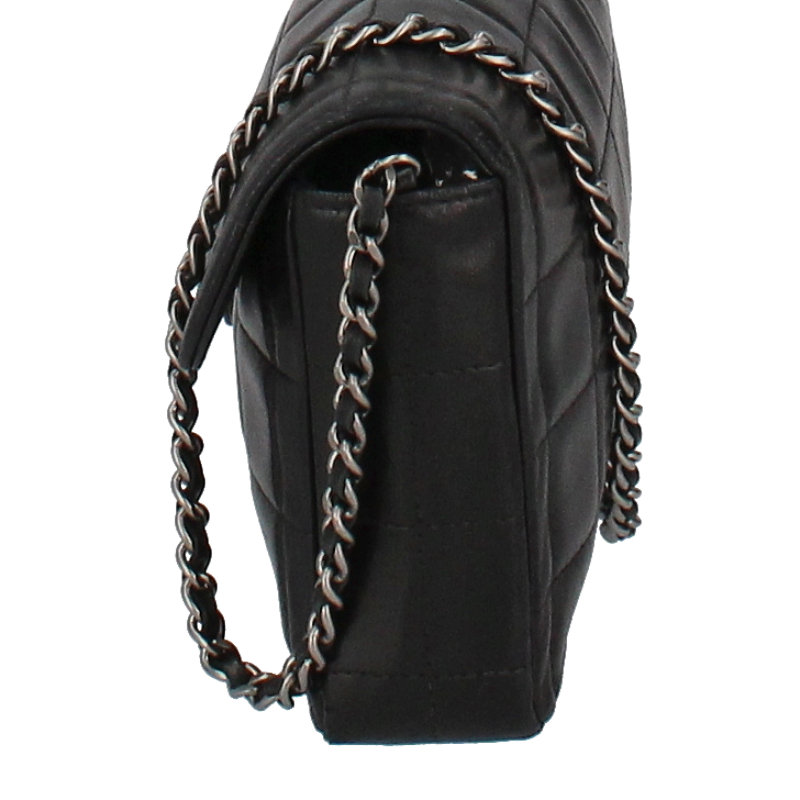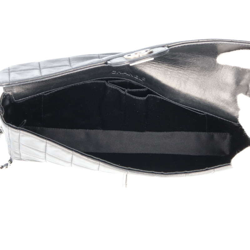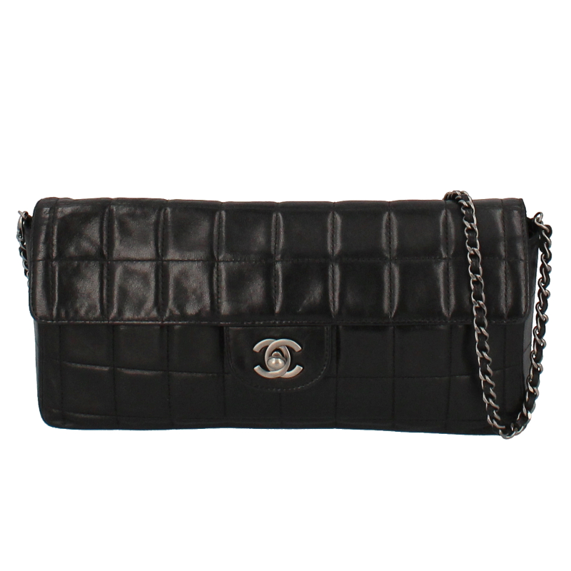 USED品。シルバー金具。シンプルでクールなイメージのチョコバーライン。シャネルらしさが随所に入ったデザインとなります。