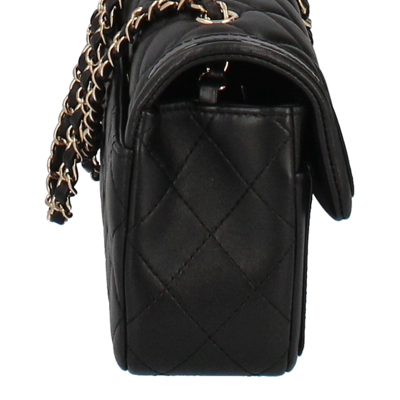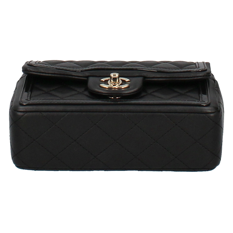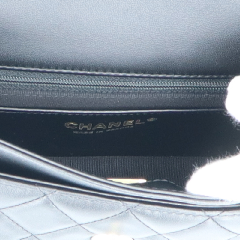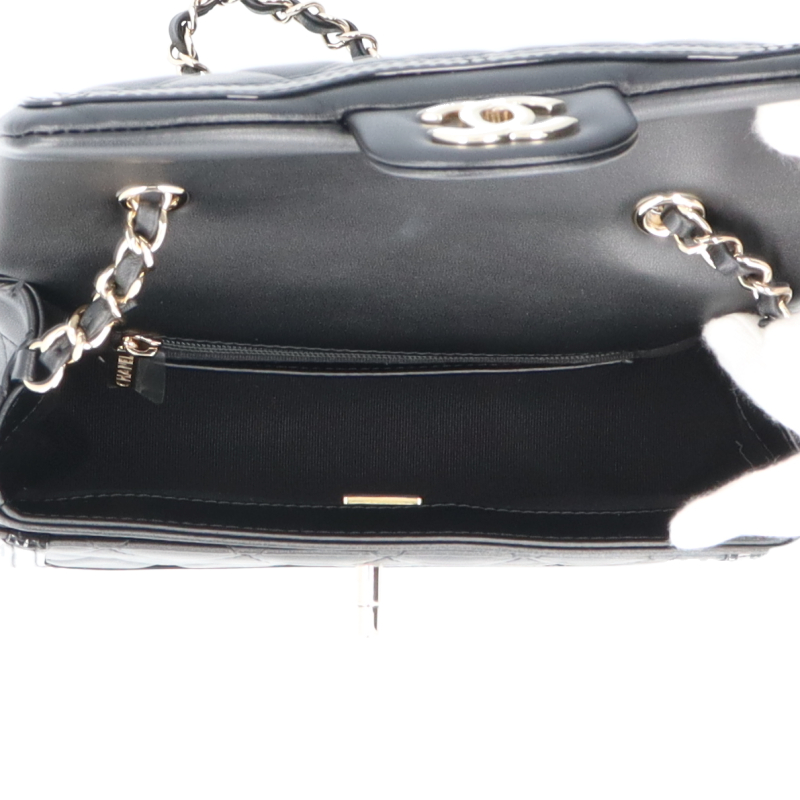 USED品。シャンパンゴールド金具。正面のココマークがシャネルを主張しており、素材のラムスキンは高級感が溢れ末永くお使い頂けます。